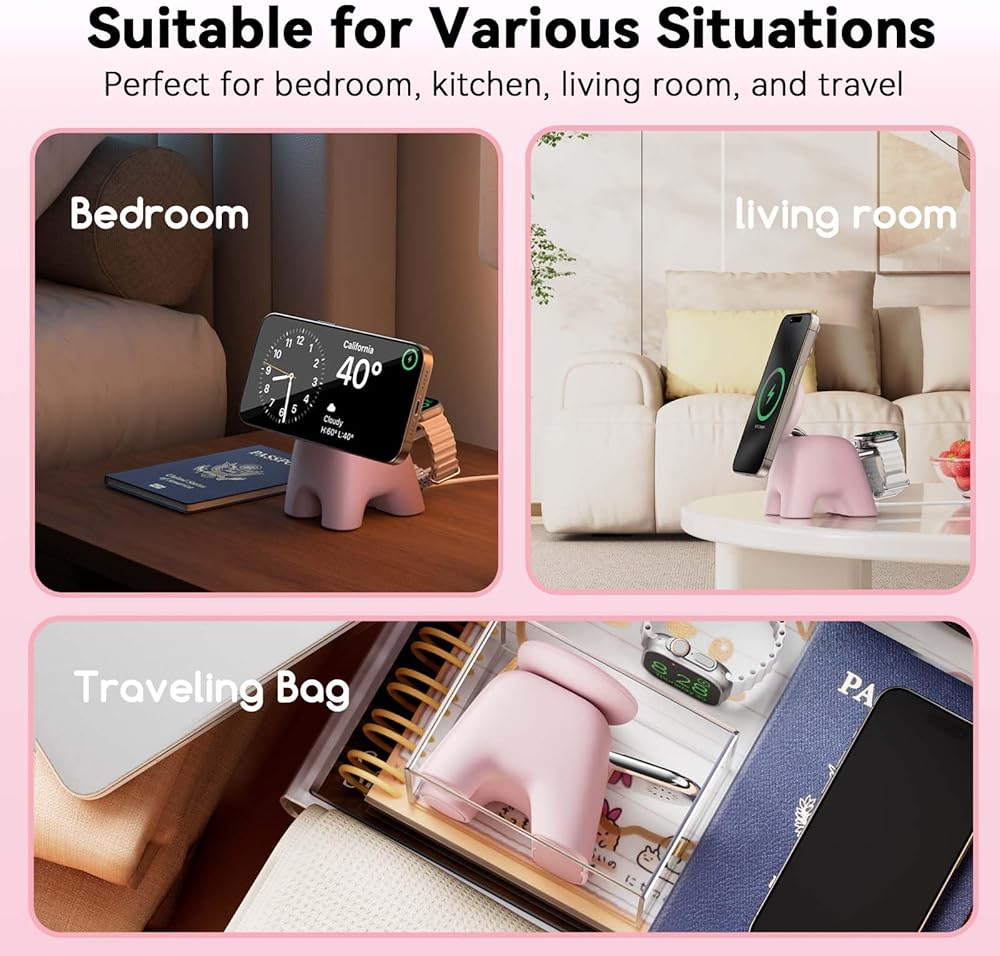 متوافق مع شحن Mag-Safe: يعمل بسلاسة مع أجهزة Apple Magsafe ، بما في ذلك سلسلة iPhone 16/15/14/13/12 و Apple Watch و AirPods. لا حاجة لإزالة حالتك الآمنة-مجرد التقاط على شاحن iPhone المغناطيسي لشحن موثوق وسريع