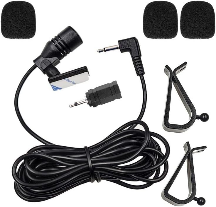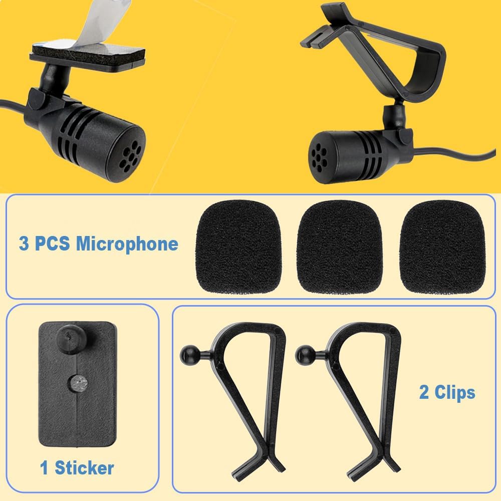 CLANMOU Car External Mic Replacement 3.5mm, Car Radio Mic Replacement Compatible with Pioneer Kenwood Boss JVC Sony Jensen Alpine, Stereo Vehicle Head Unit Enabled Audio GPS DVD