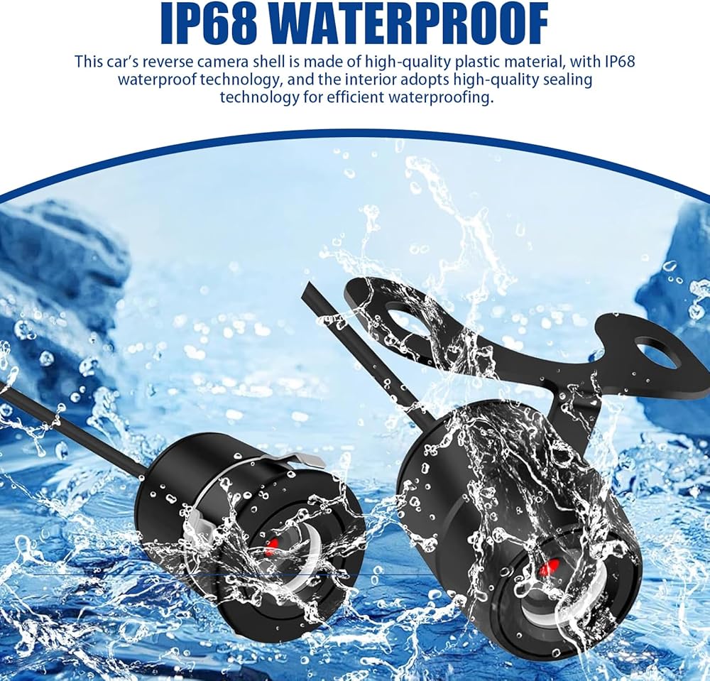 IP68 Waterproof: The housing of this car reversing camera is made of high-quality plastic material, IP68 waterproof technology, and the interior adopts high-quality sealing technology, which is highly efficient and waterproof. So you don't have to worry about rainy days and car washes, as water vapor is not easy to enter.