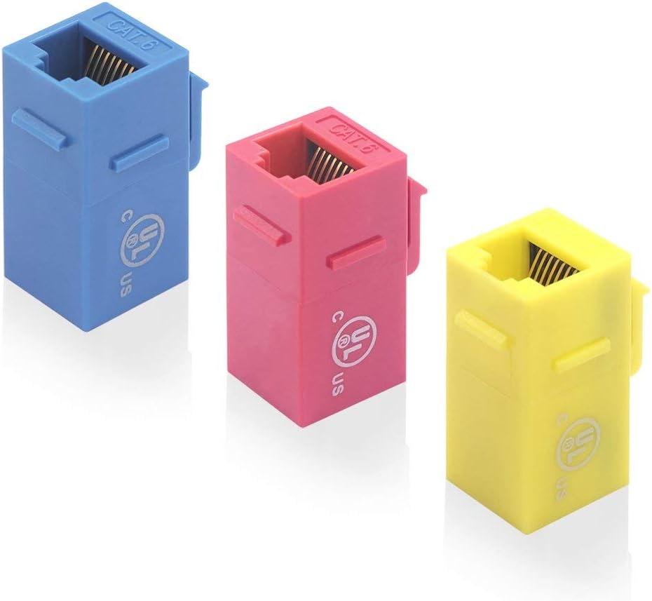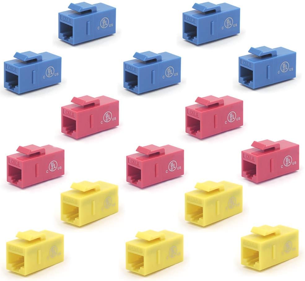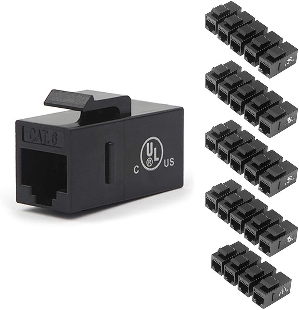 VCE UL مدرج 25 عبوة CAT6 RJ45 KEYSTONE INLINE COUPLER-BLACLE مع 15 عبوة الأزرق+Red+أصفر Cat6 مقرنة Keystone