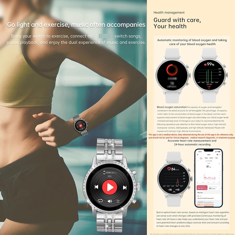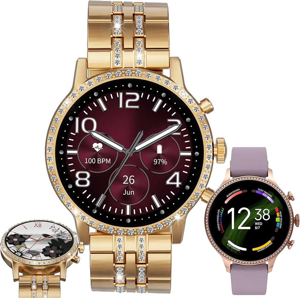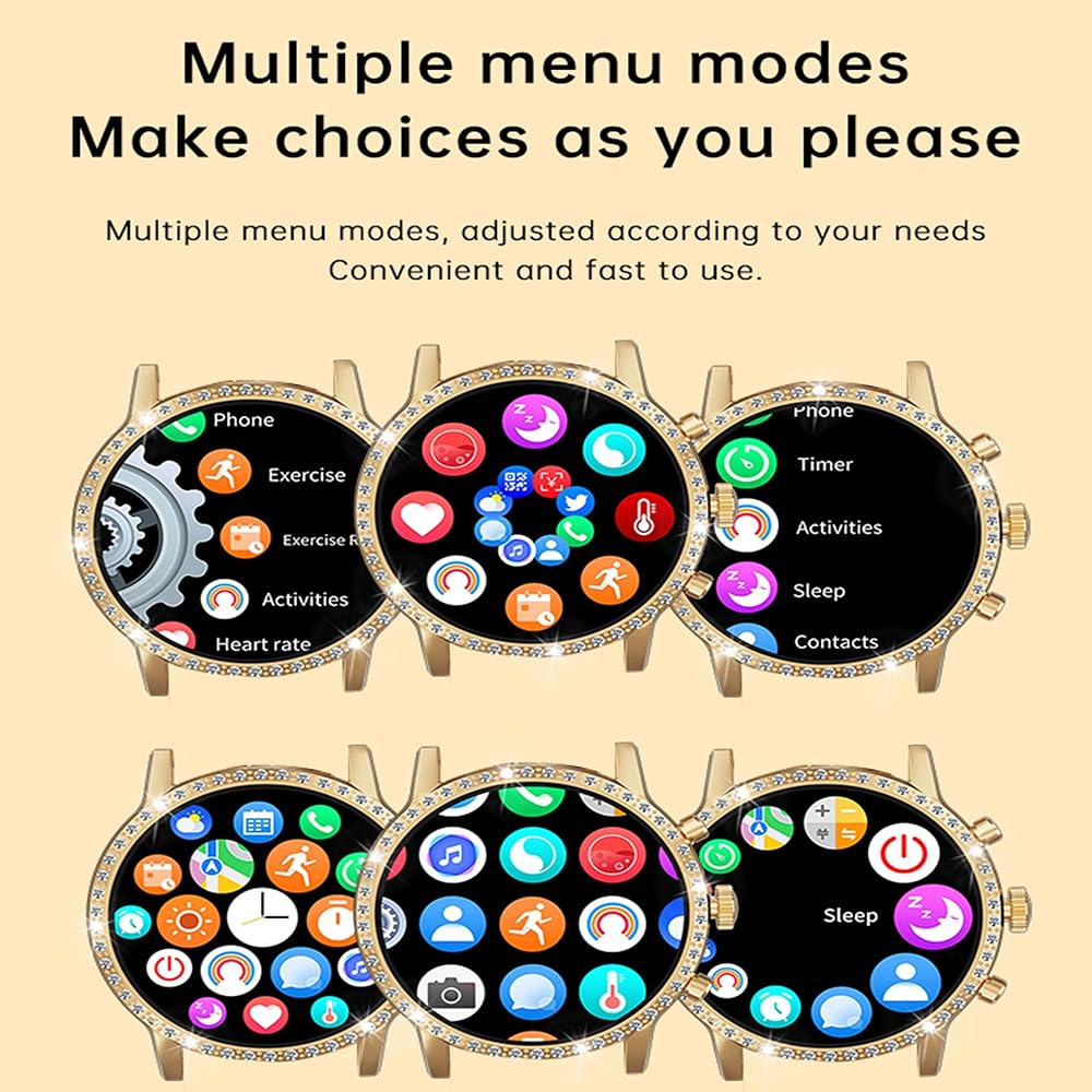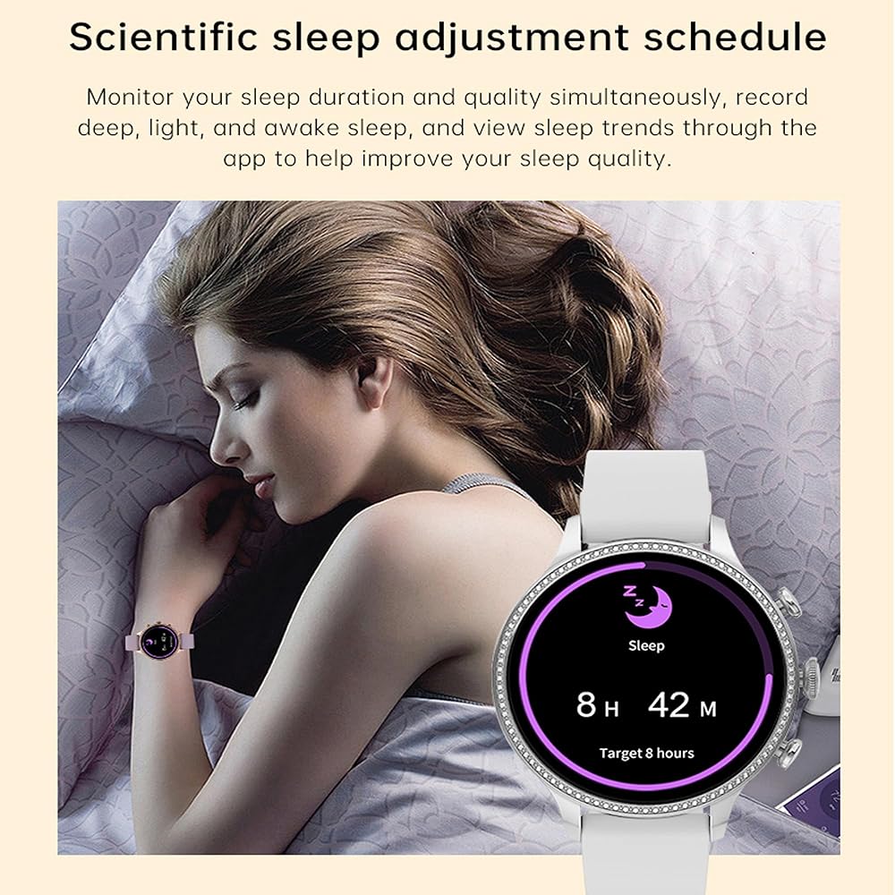 1.32'' AMOLED Smart Watch For Women, Answer/Make Calls, Wireless Call Smart Watch For Android and iPhone, Fitness Tracker, Sleep Monitoring, Step Caloric, 100+ Sport Modes, 2 Straps