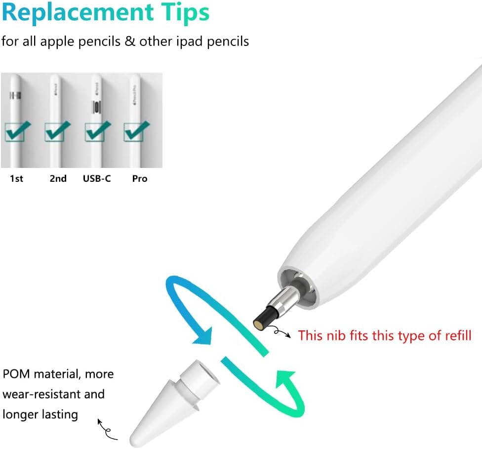 • التوافق: نصائح قلم القلم البديلة العالمية المصممة للعمل مع جميع أقلام Apple الأصلية (1st / 2nd / USB C / Pro) وقلم iPad الآخر. ملاحظة مهمة: يرجى التحقق مما إذا كانت إعادة الملء هي نفسها التي في الصورة قبل الشراء.