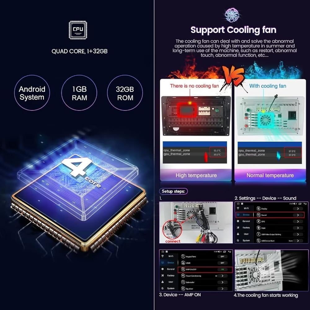 The Android stereo with 8 core CPU and 2G RAM 32G ROM capacity which can respond to the actions taking on the screen quickly.1280*720 IPS touch screen with clear resolution,built-in DSP sound system offer Great audio quality