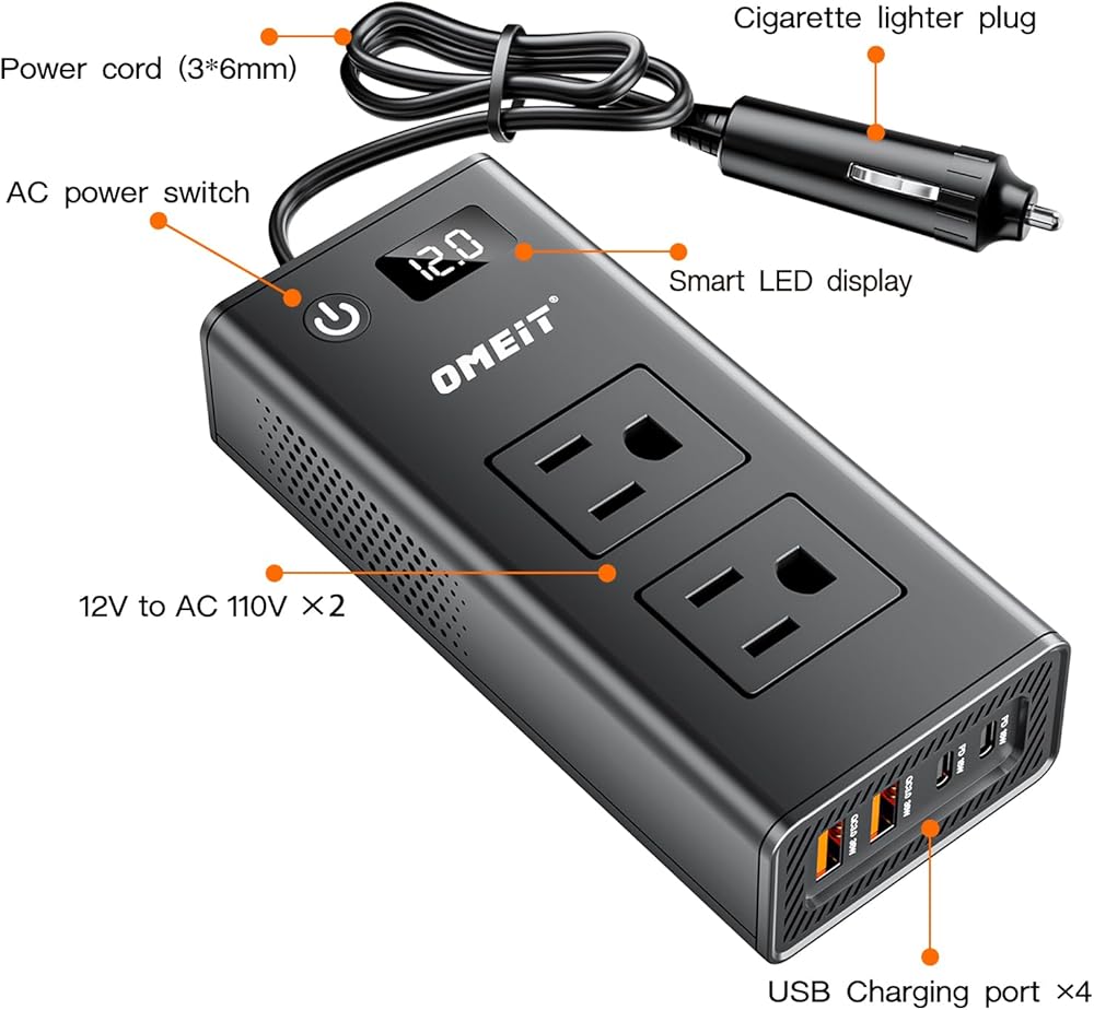 ⅵ: 💎 100 ٪ ضمان الرضا وشراء خالية من القلق: نفخر بجودة العاكس السلطة OMEIT ، المدعومة من ضمان مدته 12 شهرًا والدعم الفني مدى الحياة. إذا واجهت أي مشكلات مع محول محول الطاقة هذا ، فما عليك سوى إرسال بريد إلكتروني إلينا وسنستجيب في غضون 12 ساعة لضمان رضاك التام عن رفيق الرحلة الأساسية هذا