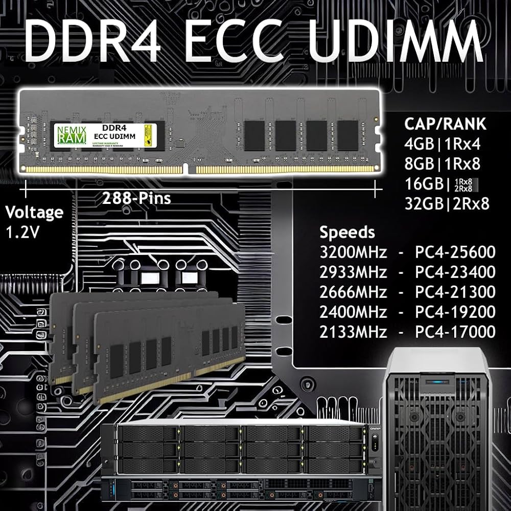 NEMIX RAM 8GB (1x8GB) DDR4 2133MHz PC4-17000 2RX8 1.2V 288-PIN ECC UDIMM الذاكرة غير المتوافقة مع HYNIX HMA41GU7AFR8N-TF ذاكرة غير محدودة