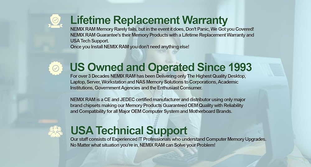 • التزامنا: لتوفير أفضل منتجات ذاكرة الكمبيوتر في هذه الصناعة. قم بإعادتهم مع ضمان بديل مدى الحياة ، وقدم دعمًا أعلى من طلاب من طاقم دعم تكنولوجيا المعلومات المحنك الذي يفهم تمامًا ترقيات الذاكرة.