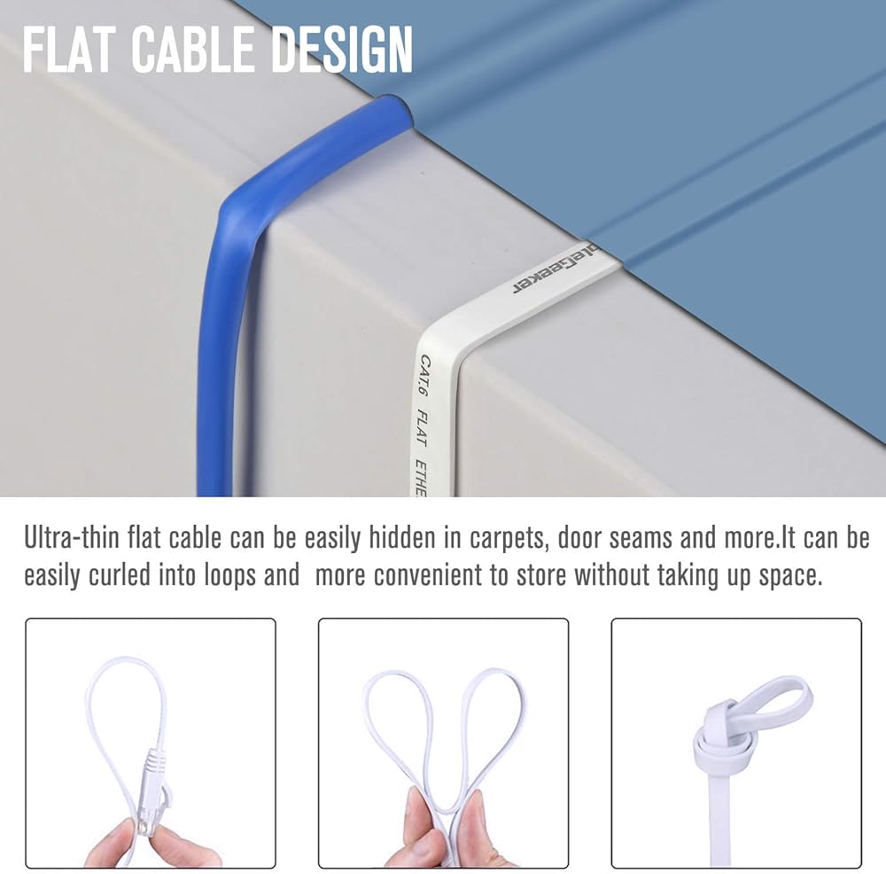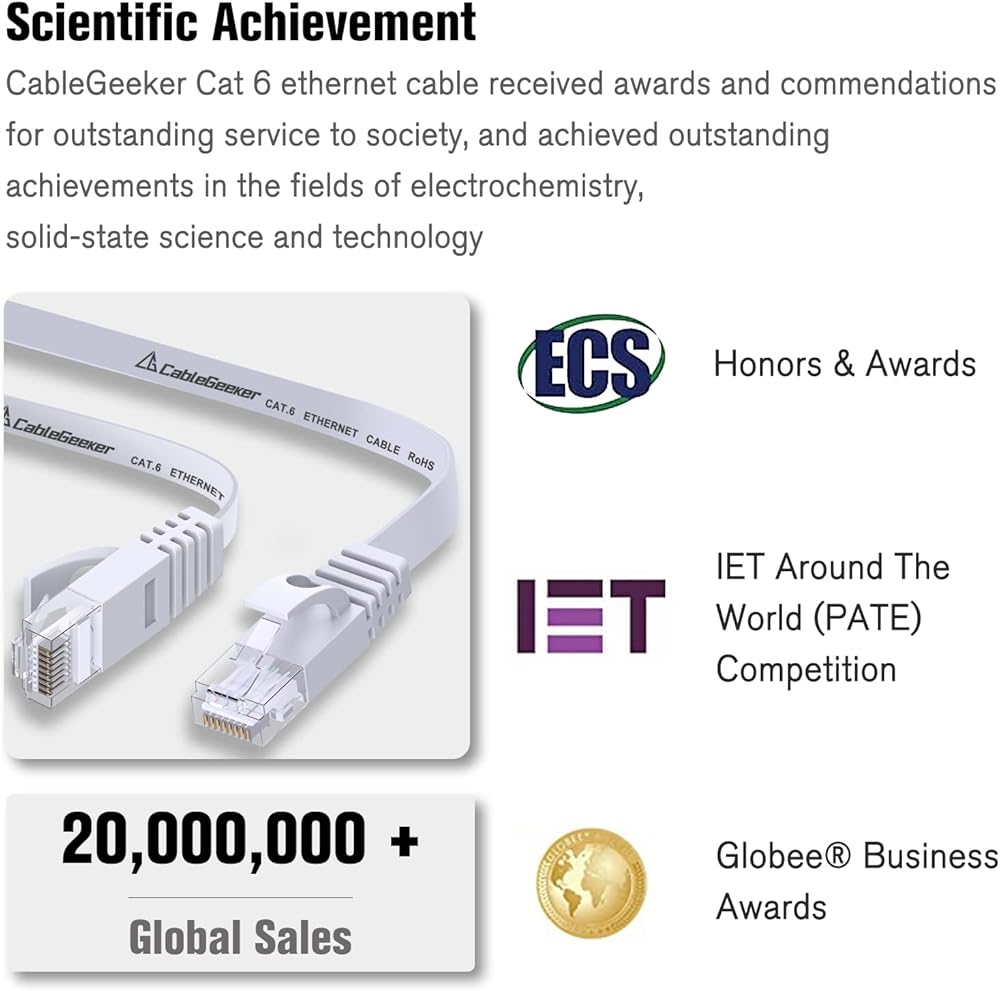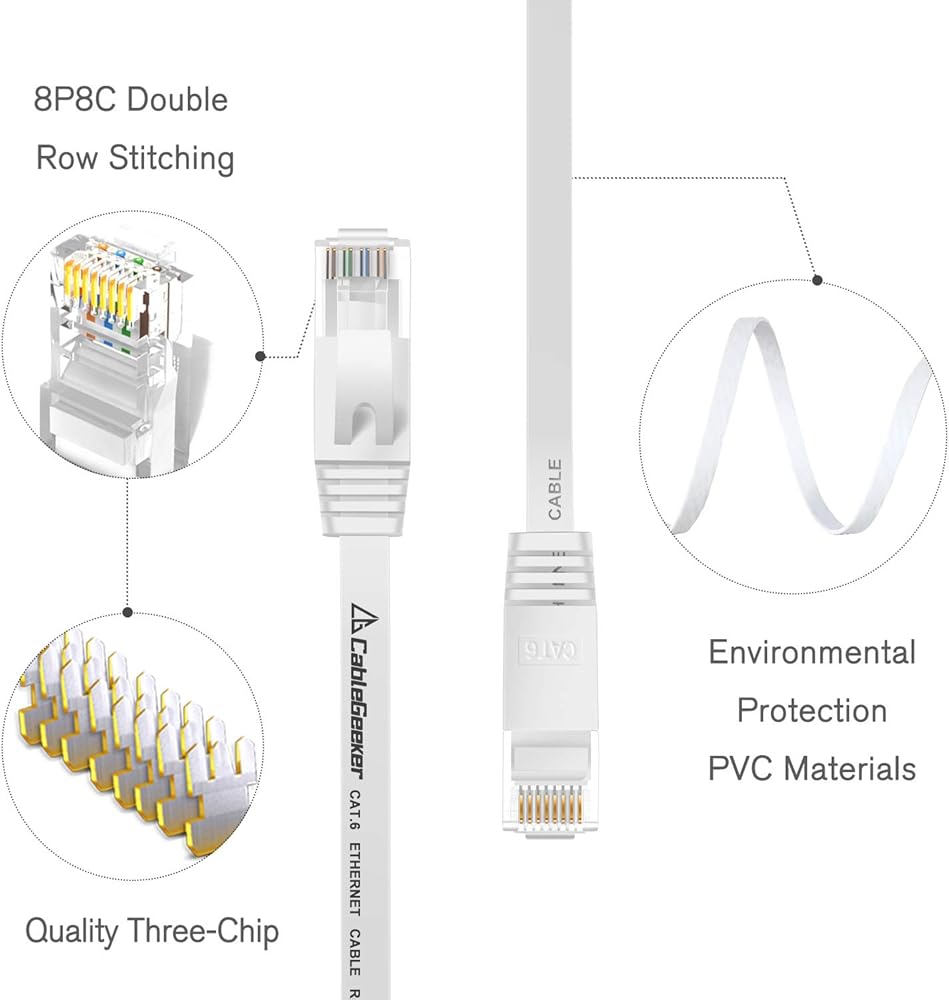 Cablegeeker Cat6 Flat 100ft White & Flat 50ft Cable Ethernet Cable