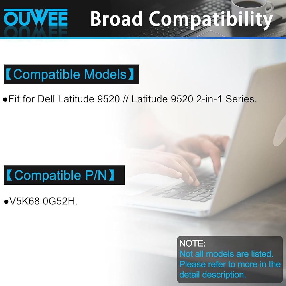 V5K68 بطارية الكمبيوتر المحمول متوافقة مع Dell Latitude 9520 Series Notebook TVKGH N2NLL HYMNG 08NFC7 N2NLL N7HTO 0PKW00 089GNG 0HYMNG 7.6V 48.5WH