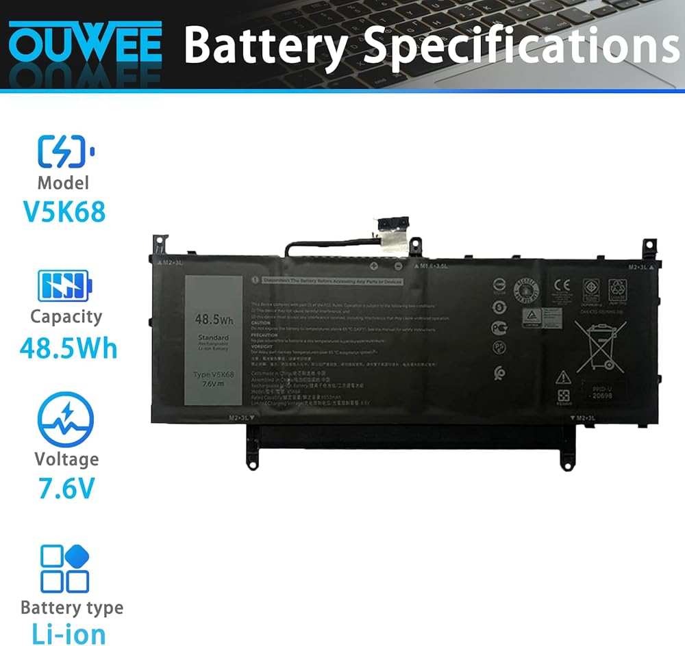 • 【أرقام أجزاء البطارية البديلة】 بطارية لـ V5K68 0G52H.