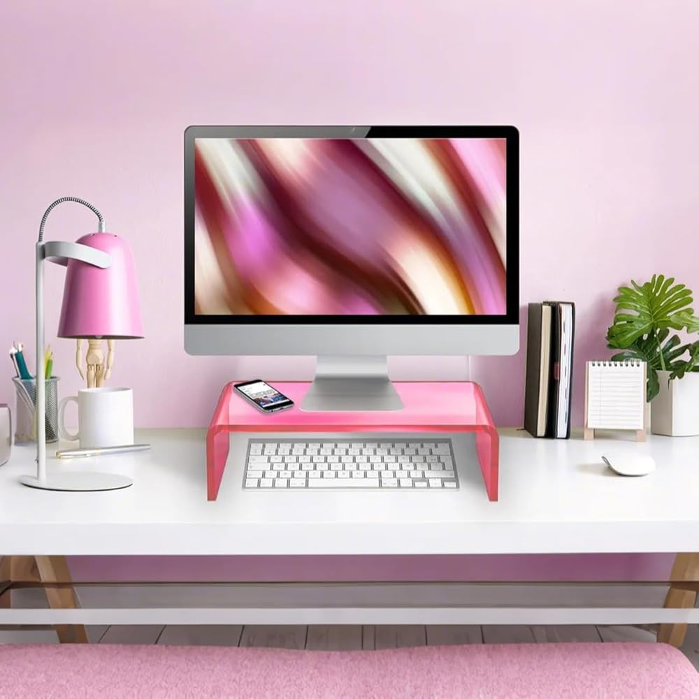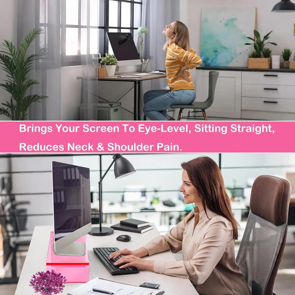 【Smart Storage & Space Saver】 ينشئ مساحة إضافية تحت الحامل لتنظيم لوحات المفاتيح أو أجهزة الكمبيوتر المحمولة أو الكابلات. قم بتحويل مكتبك الفوضوي إلى محطة عمل ذات مظهر محترف مع هذا المنظم الوردي الأنيق.