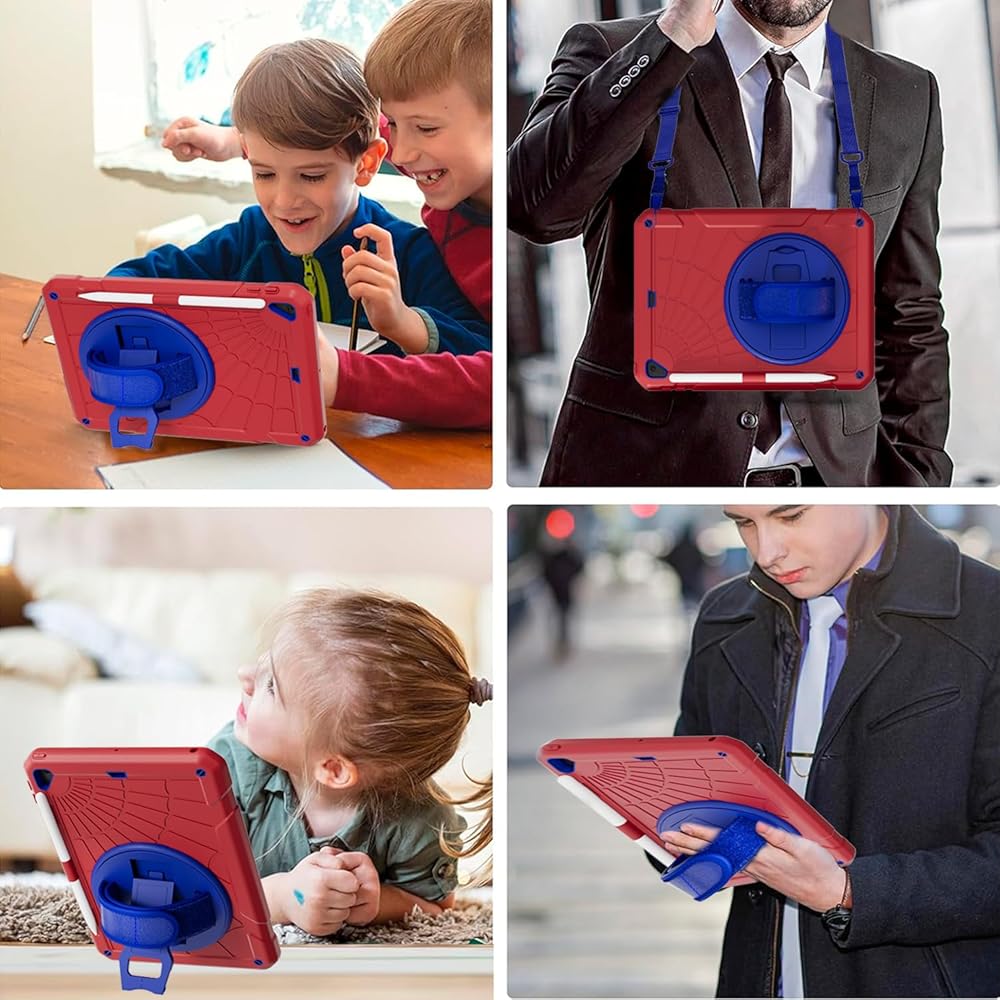 【360°Rotating Kickstand & Hand Strap】Rotatable kickstand easily support your iPad in multi-angle viewing.Moreover,the soft hand strap allows you to hold your iPad firmly and prevent accidental drops.Convenient for studying, gaming, watching video, etc.