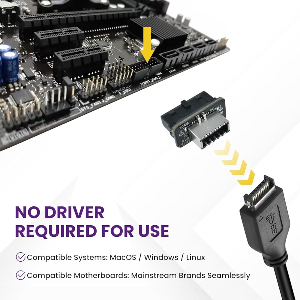 𝐏𝐮𝐫𝐩𝐨𝐬𝐞: محول رأس USB 3.2 Gen 1 إلى USB 3.2 Gen 2 ، يتم توسيع نطاق منفذ USB C الخاص بجهاز الكمبيوتر الخاص بك بسهولة عن طريق تحويل منفذ IDC USB 3.0/3.1 من نوع USB 3.2 من النوع CONTERS.