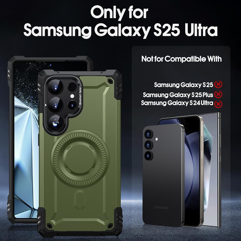 • 【حماية من الدرجة العسكرية】 متوافقة فقط مع Samsung Galaxy S25 Ultra 6.8 ''. وسادة TPU الناعمة الممتازة وظهر الكمبيوتر الصلب يقاوم 3000+ 10 أقدام قطرات. تحافظ الشفاه المرتفعة على رفع الكاميرا لمنع العدسة من الصدمة والتصادم والخدش. لا تقلق بشأن السقوط في البيئة المتطرفة في البرية ، رائعة للحياة اليومية ، في الهواء الطلق ، الإنشاءات ، التخييم ، المشي لمسافات طويلة أو غيرها من الأنشطة البرية.