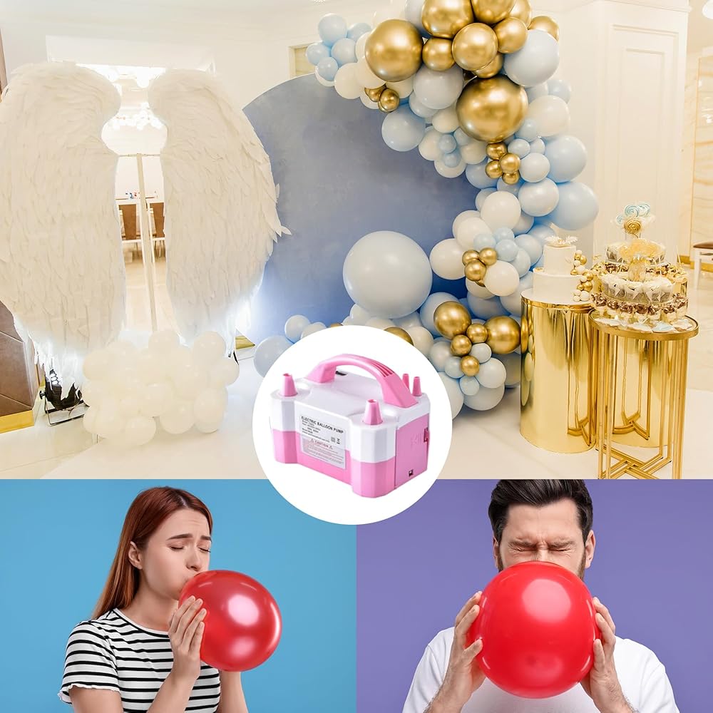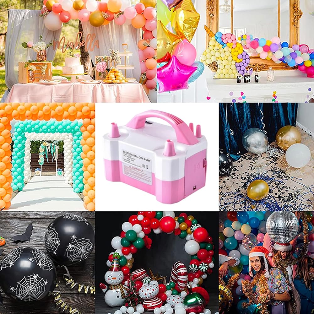 مضخة البالون الكهربائية ، محمولة مزدوجة فوهة مُضلِّن 600 واط عالي الطاقة 110 فولت تضخم الحفلات السريعة ، وتوفير الوقت مع إكسسوارات وفيرة-مضخة هواء البالونات لإعداد عطلات الزفاف عيد ميلاد