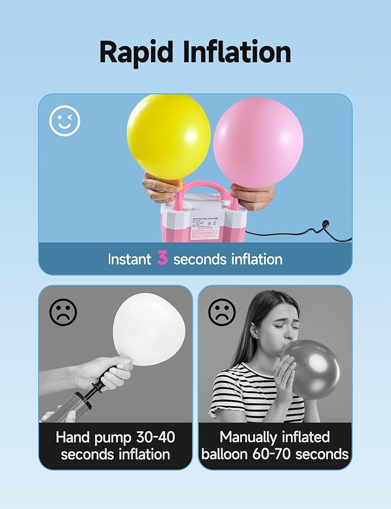 تضخيم محرك التضخم والوقت 600W Saver 600W يتضخم أكثر من 50 بالونات اللاتكس في الدقيقة-لا يوجد المزيد من الخدين أو الدوار من النفخ اليدوي! تتيح لك الأوضاع شبه التلقائية (الصحافة إلى التأمر) والأوضاع التلقائية الاختيار بين التحكم الدقيق أو التشغيل الخالي من اليدين لأعياد الميلاد أو حفلات الزفاف أو ديكور العطلات.