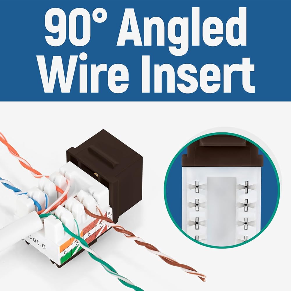 Product 2 - 90° Angled CAT6 Keystone Jack in Brown - Slim Profile RJ45 Ethernet Connector - Compatible with 90° Angled Speed Termination Tool - easyJACK (B094WB91H3) - 10-Pack