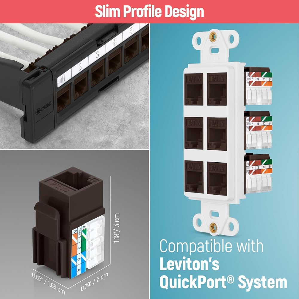 Bundle – 2 Items: 24-Port Keystone Patch Panel + 10 Pack of RJ45 CAT6 Keystone Jacks - Brown