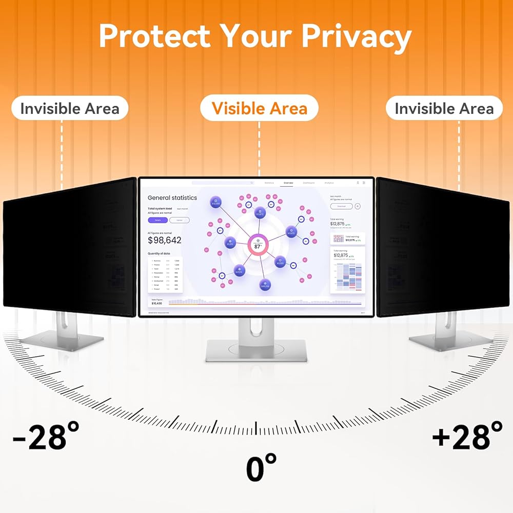 • 【ANTI SCRATCH & WASHABLE 】Our privacy anti-glare Monitor film has a surface enhancement layer to protect the privacy filter from scratches and fingerprints. It is washable and reusable. Even after prolonged use, you will get a brand new privacy screen for your desktop computer monitor after cleaning. Very Durable!