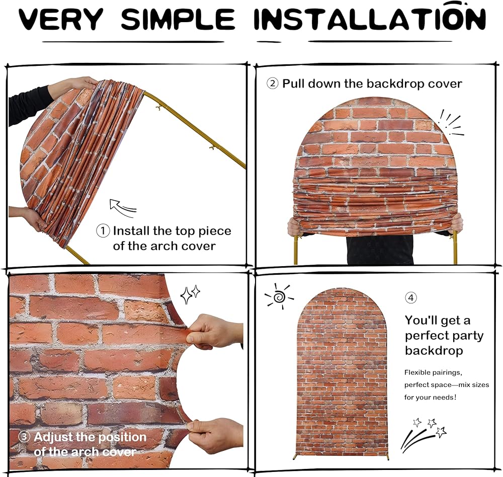 Red Brick Arch Cover : Wedding arch cover (Arch stand Not included). The wood arched backdrop stand cover allows you to use the cover for a variety of events. The spandex-fitting backdrop cover is perfect for graduation ceremonies and other formal occasions