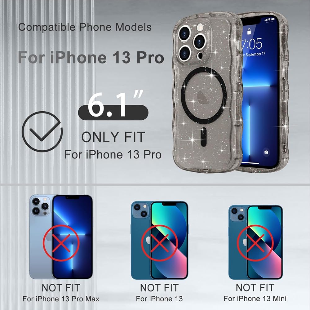 مغناطيسي لـ iPhone 13 Pro Case Case Case و Sparkly Bling Glitter Cleat Curly Wave Wave Wave Wave Wave For Women Men متوافق مع حالة هاتف Magsafe Froofchproof For iPhone 13 Pro ، Black