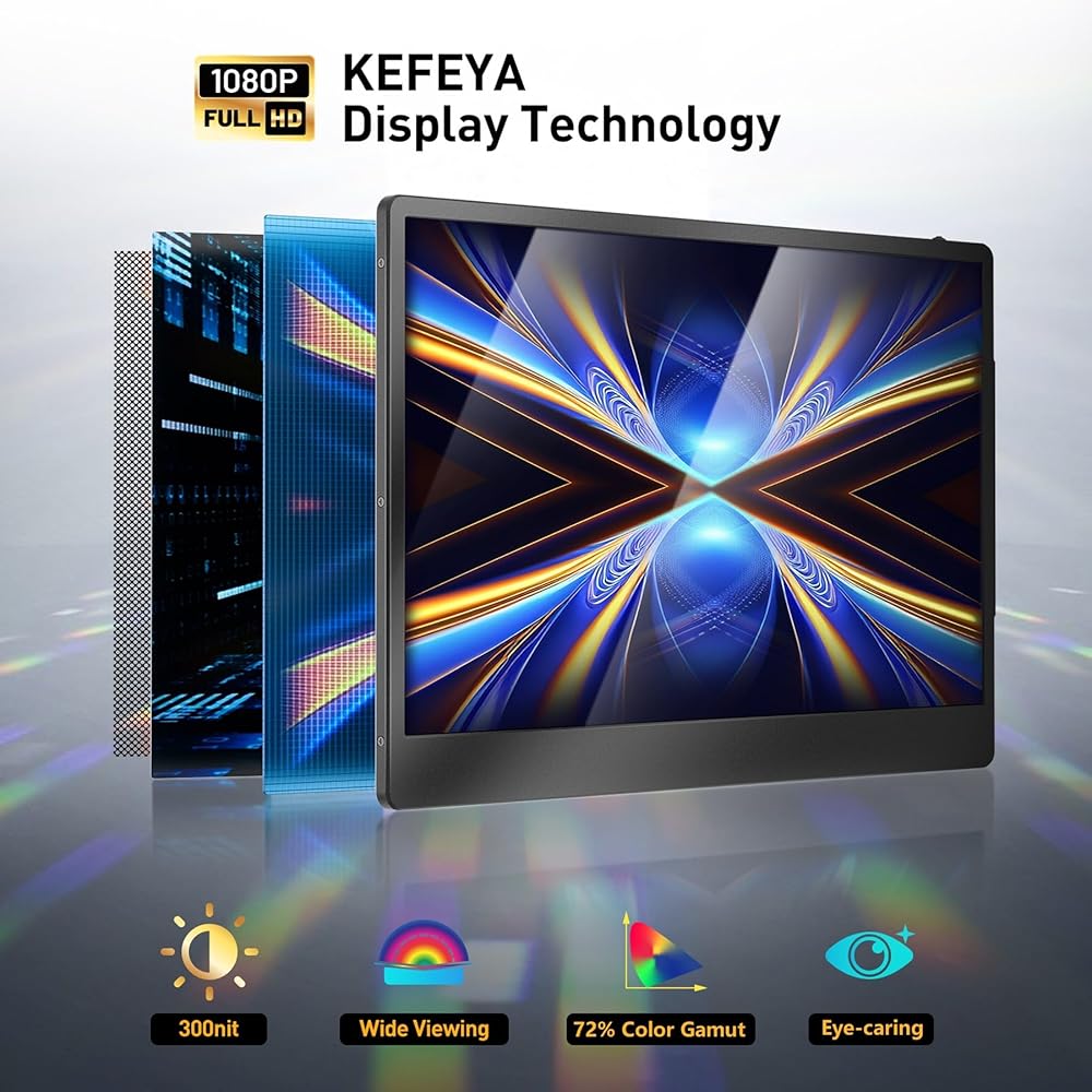 Premium Screen Display - With this Kefeya portable monitor, you can multitask efficiently and easily. You can also share the screen with your partners in scenarios such as meetings or study discussions, with HD image quality for a clearer viewing experience. This laptop screen extender allows you to set the parameters of the screen according to your personal habits, such as brightness, contrast, color temperature, etc., with memory function.