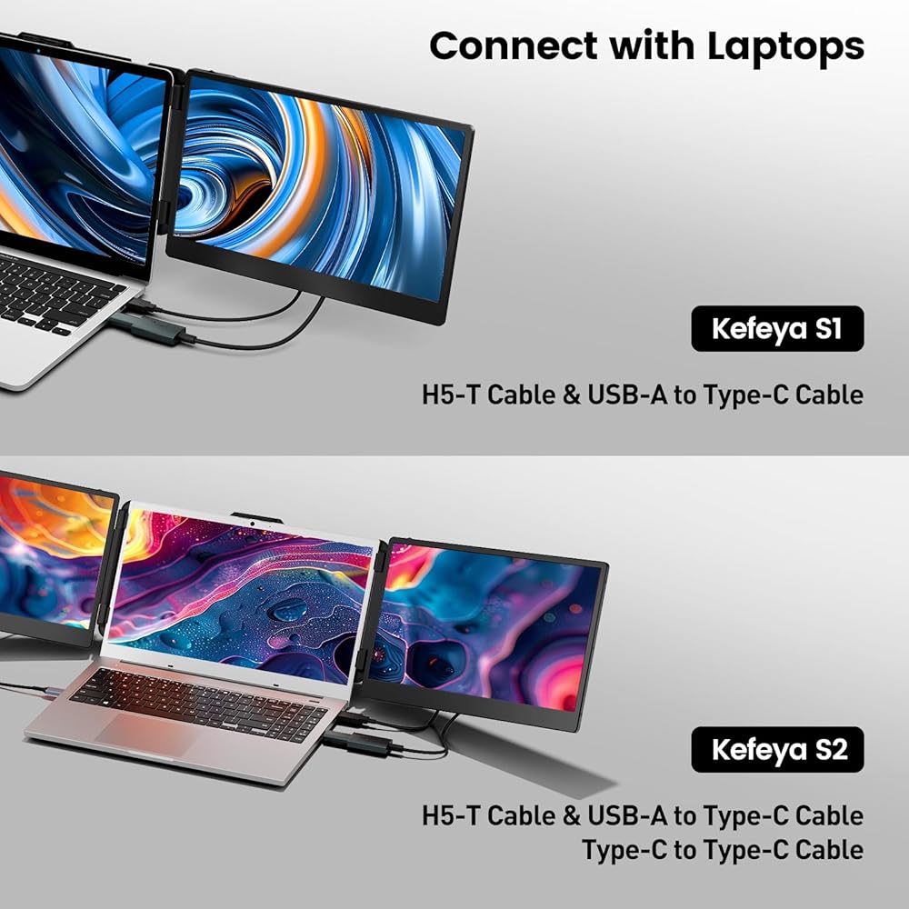 Useful Tips - The stable and expandable bracket allows hassle-free attachment to your laptop frame without the need for additional accessories like magnets. In addition, the portable monitor for laptop is compatible with MacBooks equipped with the M1 Pro and M1 Max chips, but not MacBooks equipped with the M1 or M2 / M2 Pro / M3 chip. (Chip incompatibility issues between this product and MacBook can be resolved by using the H5-T cable developed under the Kefeya brand).