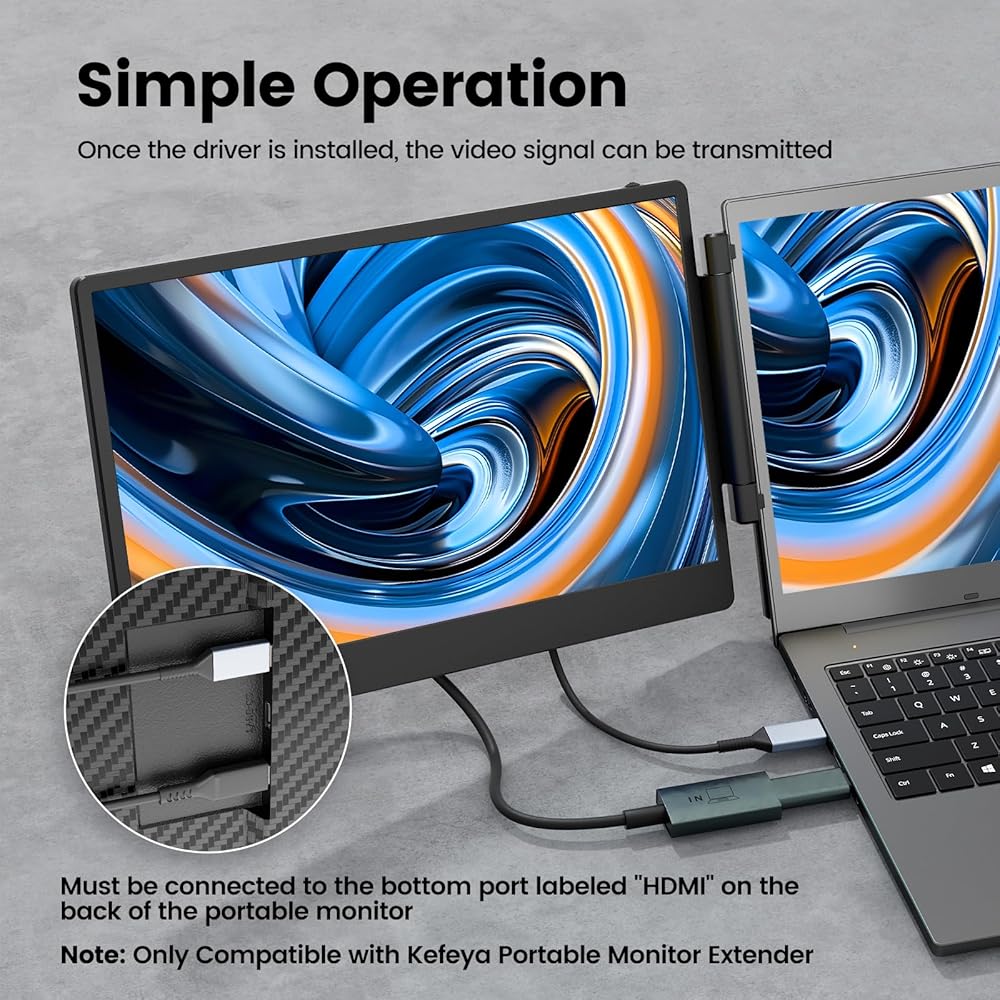 Easy to Set - KEFEYA laptop screen extender operates seamlessly with a plug-and-play mechanism, providing all necessary cables for Type-C, HDMI, and USB-A connectivity. Compatible with various systems, including Windows, Mac OS, Switch, PS4, and Xbox One, it sets up and takes down effortlessly.