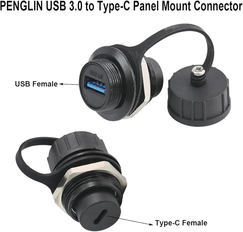 【Water/Dustproof】USB A to C female to female panel mount connector with waterproof cap.Suitable for various harsh environments such as humidity, oxidation, etc. to ensure stable current. Easily convert between usb a and Type C to provide a more stable transmission environment.