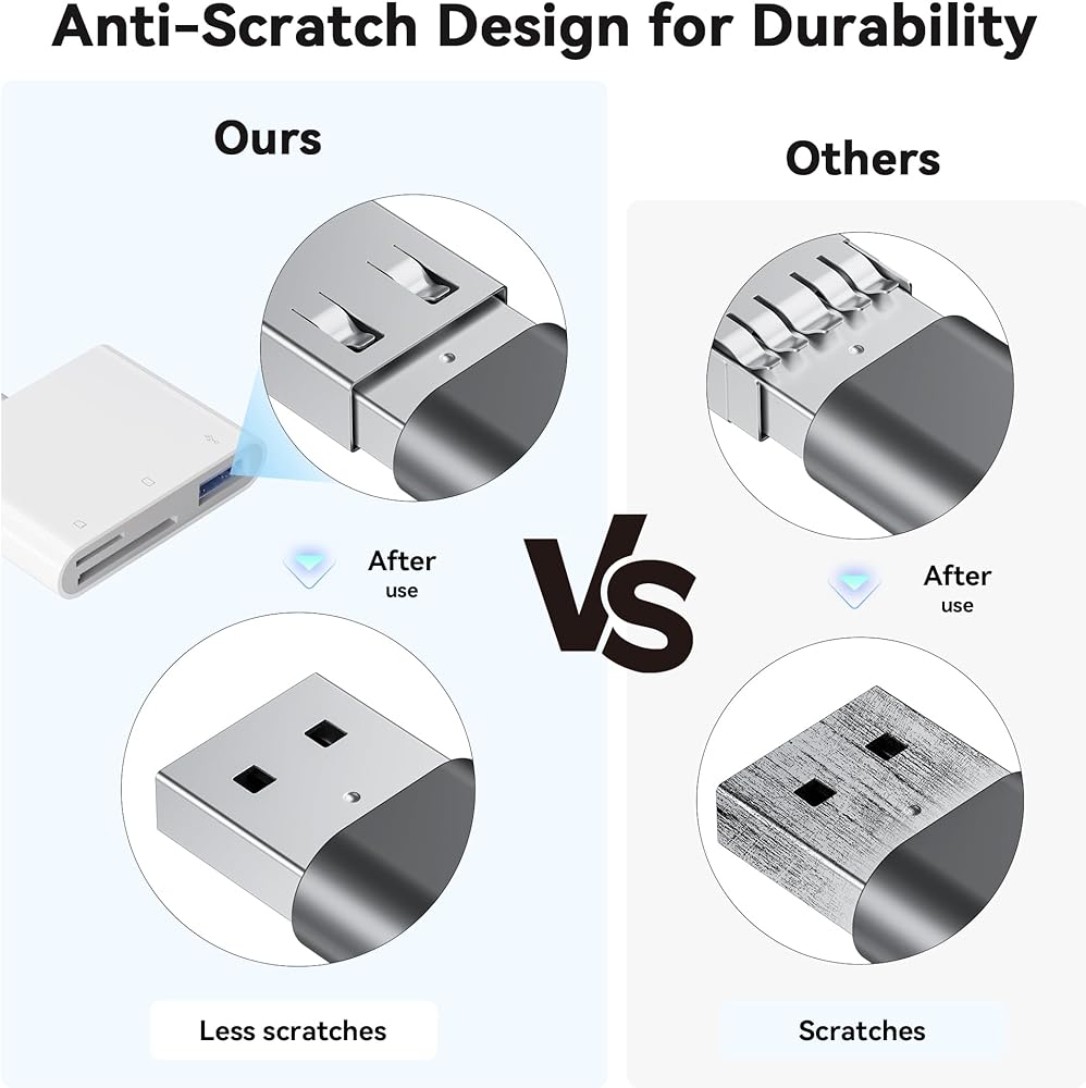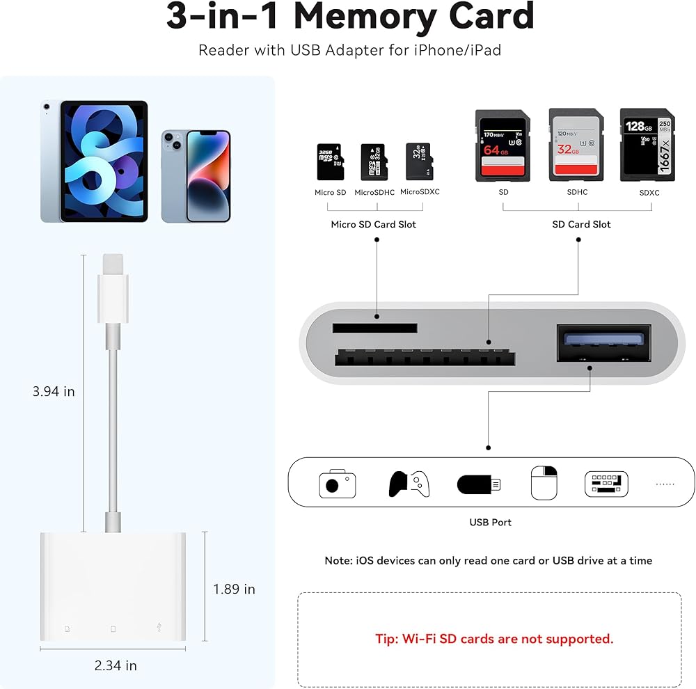 افعل أفضل: استخدام قارئ بطاقة SD ، سوف يجلب لك المزيد من الراحة. باستخدام قارئ بطاقة Micro SD ، سيجلب لك لحظات أكثر إثارة للاهتمام. من خلال كل من قارئ بطاقة SD لـ iPhone ومحول USB-C ، يتمتع بالتوافق عبر جميع الأدوات الخاصة بك ، من أجهزة iPhone إلى USB-C iPad أو MacBook أو الكمبيوتر المحمول أو Android.