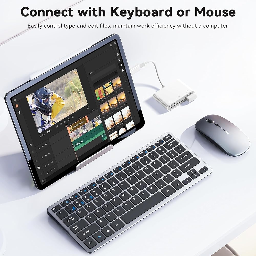 واجهة USB متعددة الاستخدامات: تدعم واجهة USB ، كمحول كاميرا OTG إلى iPhone/iPad ، العديد من أجهزة USB بما في ذلك الكاميرات الرقمية ومحركات الأقراص الفلاش وسماعات USB ولوحات مفاتيح MIDI والمزيد. (غير متوافق مع الطابعات أو محركات الأقراص الصلبة الخارجية). لا يتطلب محول كاميرا USB أي تطبيق ، في الوقت نفسه ، لا توجد حاجة لإزالة بطاقة ذاكرة الكاميرا.