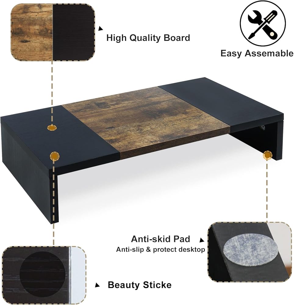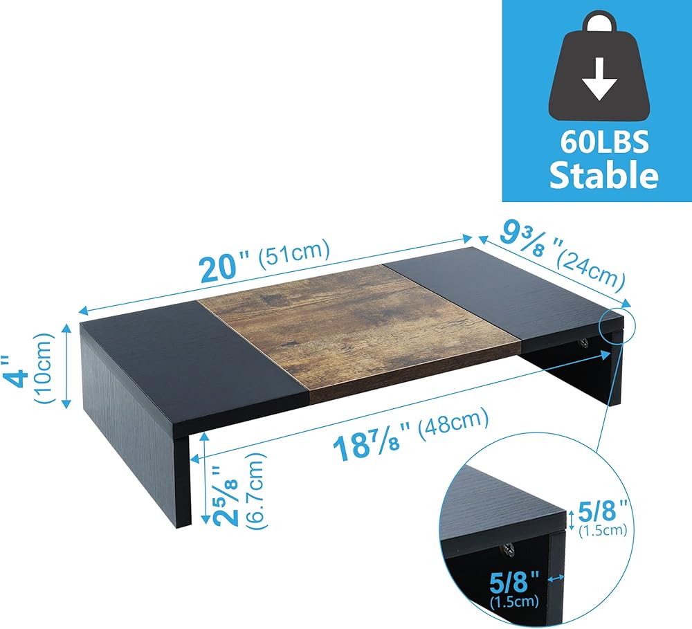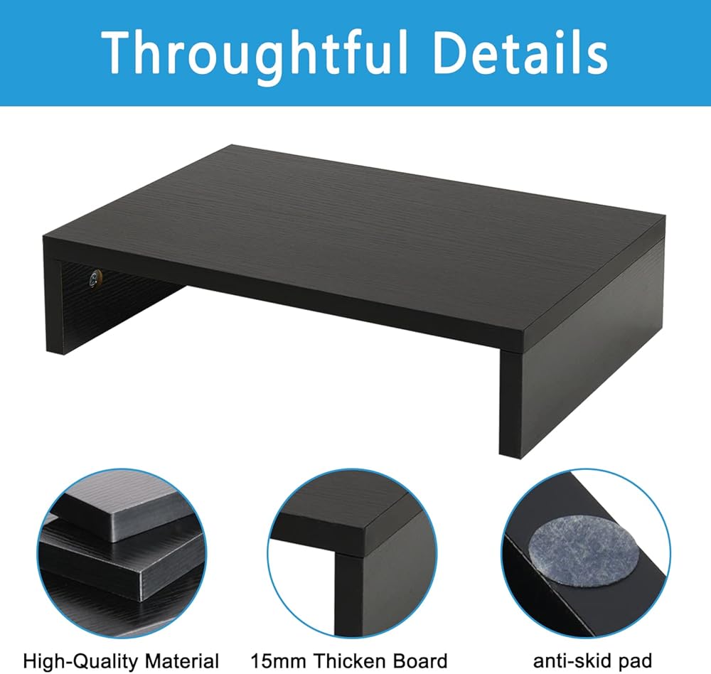 【Better Support】Stand can hold 60Ibs, there is a thick steel bar stabilizing support structure on the back avoid shaking. TEAMIX monitor riser made of high quality MDF wood board, strong and sturdy.