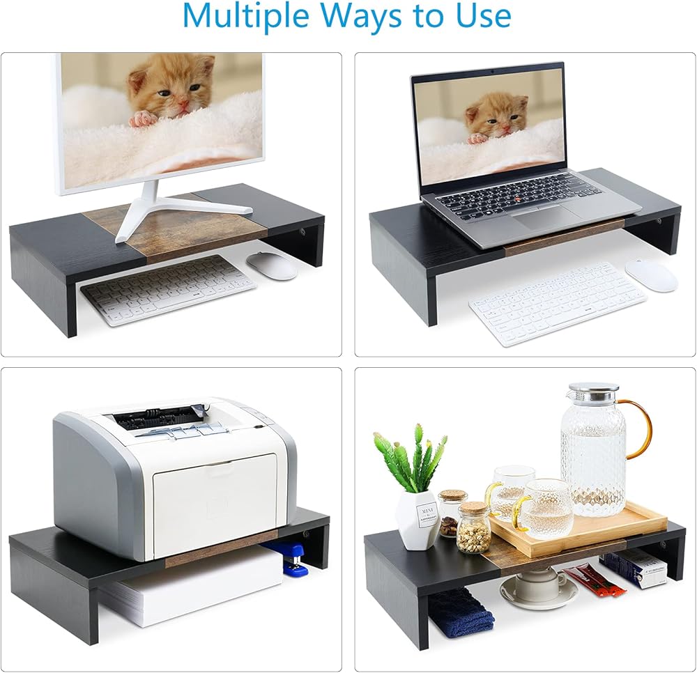 【Prefect Office Partner】This Multi-function stand can meet your 3 needs one time: ★Raise monitor/laptop/printer/game box ★Relieve fatigue ★Increase storage space.