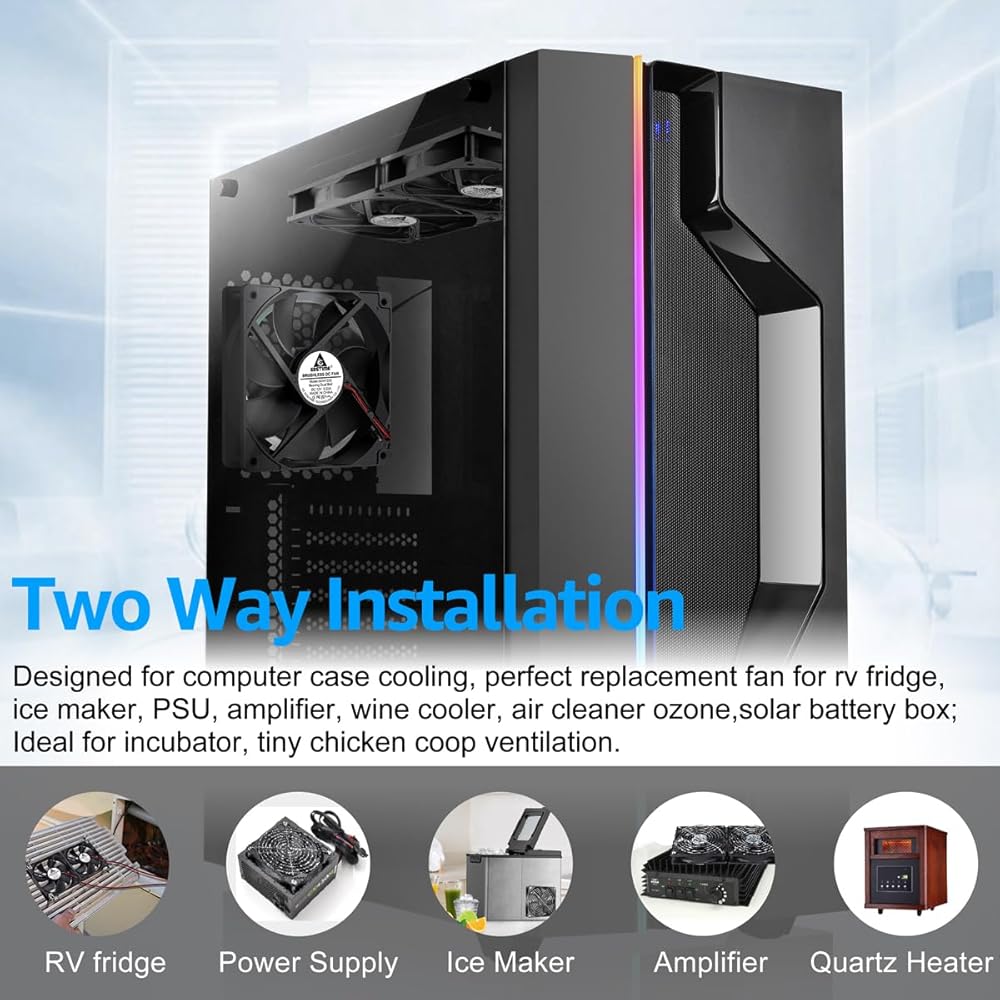 • High Performance Cooling: These 12 volt dc fans can be used to replace old or broken 120 mm fans in ice maker, power supply, amplifiers, infrared heater, inverter, rv boat, mini fridge, UPS battery backup, LED stage lights, other DIY cooling devices, etc.