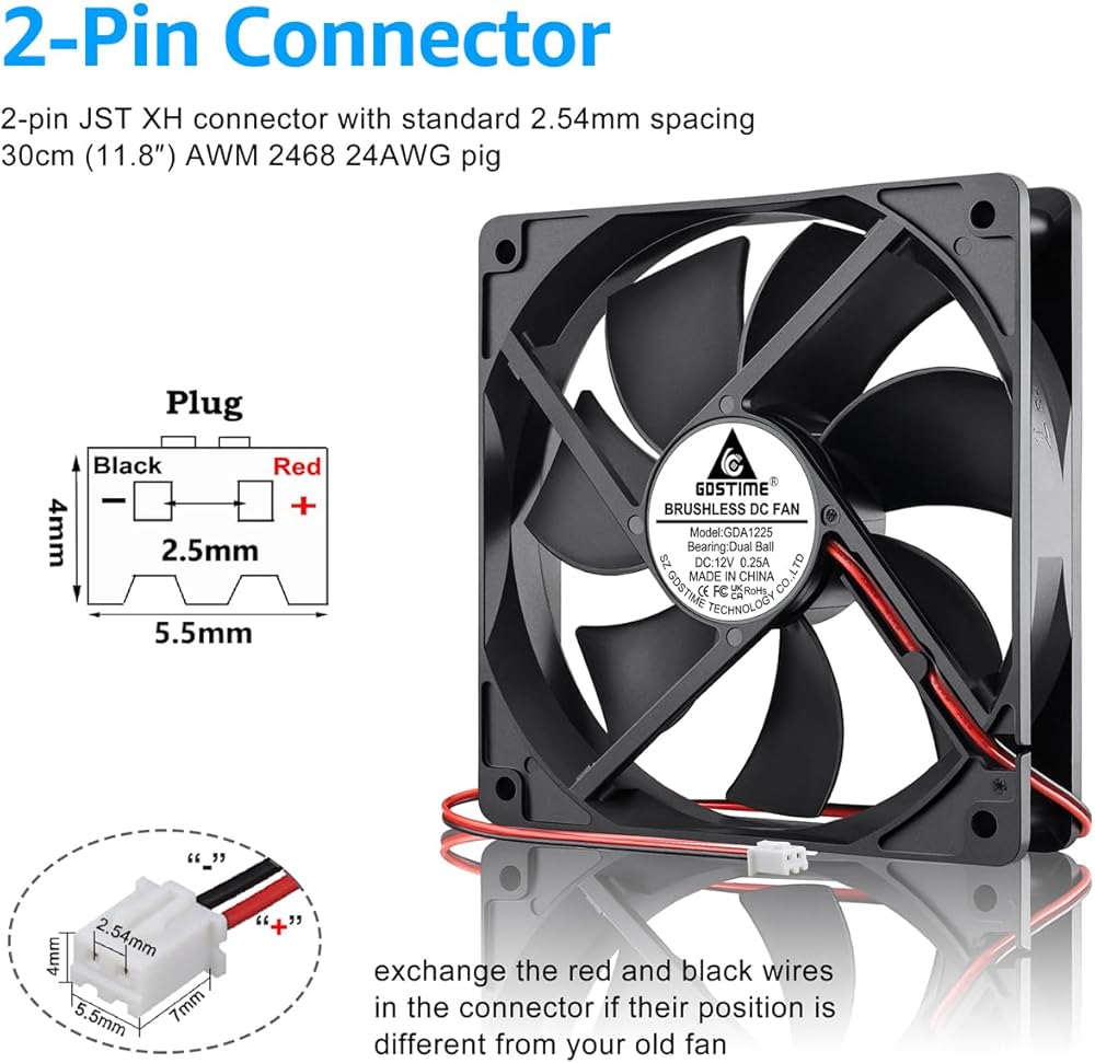 • 2-Pin Connector: It is a 2 pin fan with 11.8 inches enough long power cable; Red wire: Positive; Black wire: Negative; You can easily exchange the wires if their position is different from your old cooling fan