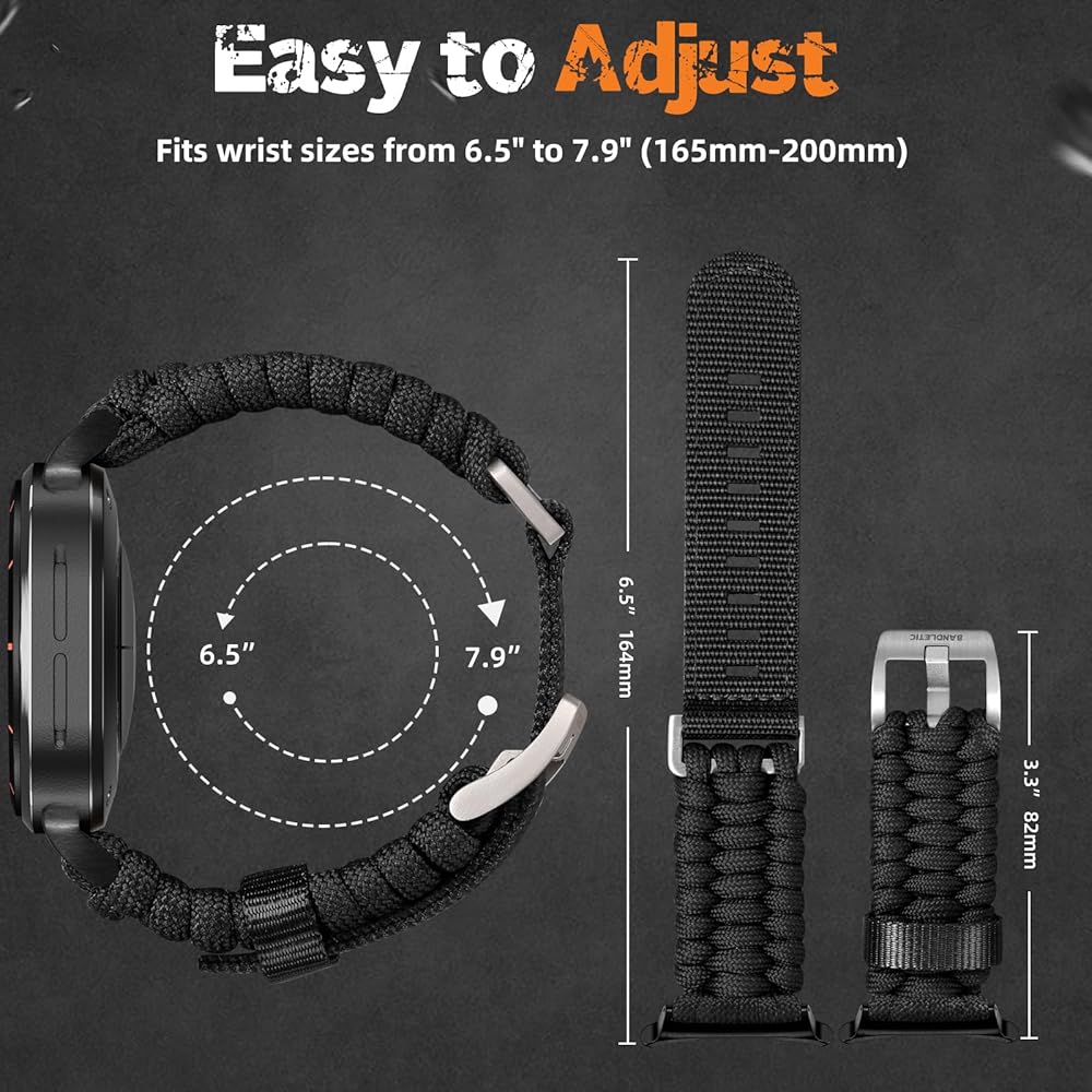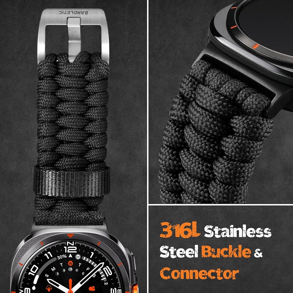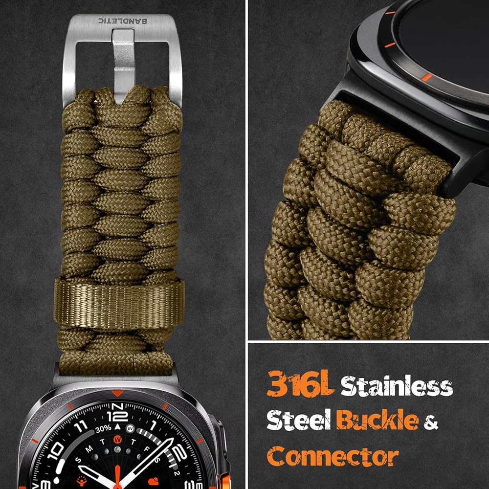 【توافق وأحجام】 نطاقات paracord Bandletic متوافقة فقط مع Samsung Galaxy Watch Ultra 47mm (2024) ، وليس لمراقبة Galaxy 7/6/5/4 44 مم 40 مم/6/6 كلاسيكية 43 مم/5 Pro 45mm/4 الكلاسيكية 46 مم أو غيرها من الطرز (ملاحظة: لا تتضمن). يمكن تعديل Galaxy Watch 7 Ultra Cands بسهولة لتناسب أحجام المعصم 6.5 "-7.9" (165mm-200mm). يرجى التحقق من طراز الساعة وحجم الرسغ قبل الطلب