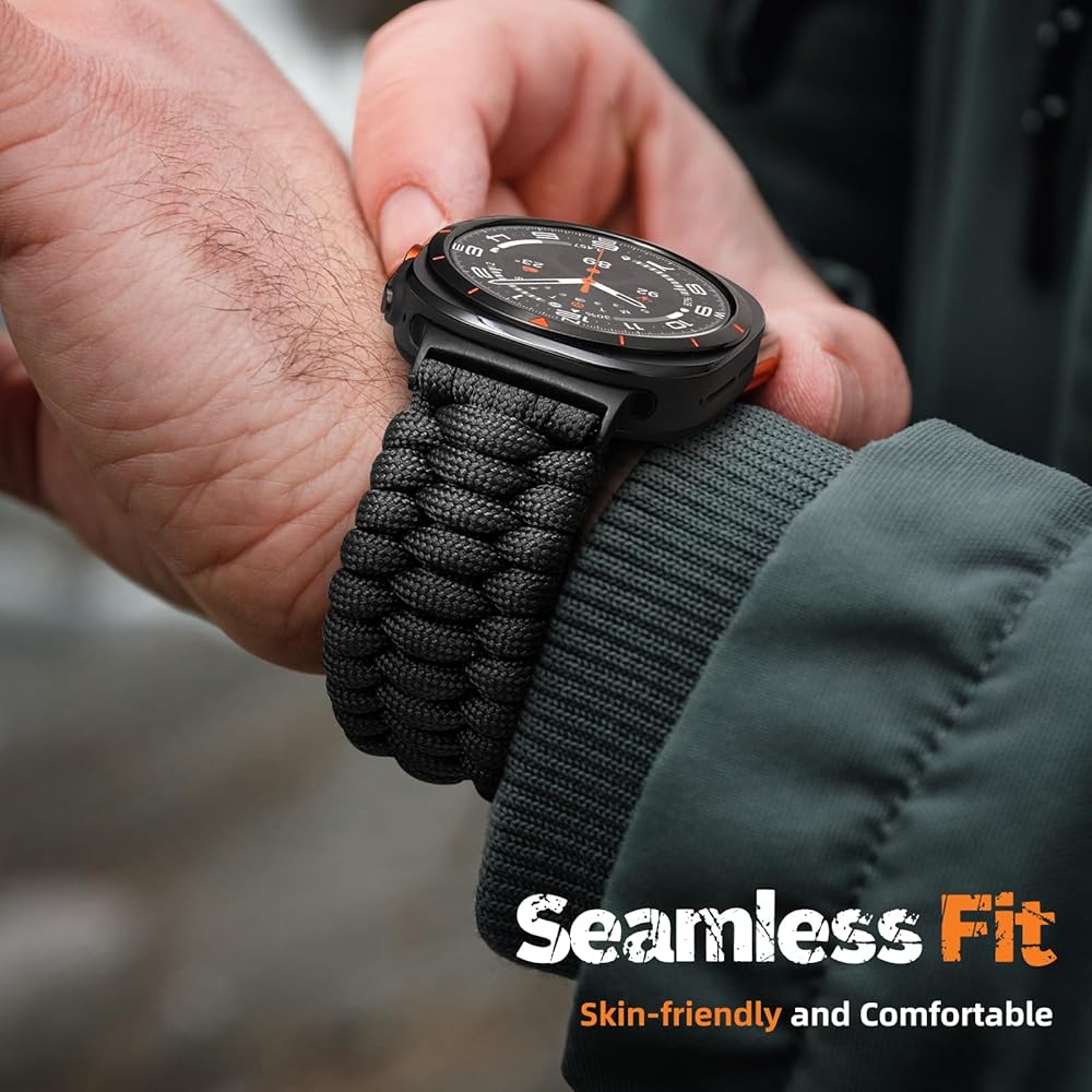 【فرقة البقاء على قيد الحياة متعددة الوظائف في الهواء الطلق】 الأشرطة العسكرية العسكرية المتوافقة مع Samsung Galaxy Ultra Watch Band هي متعددة الوظائف للمغامرات الخارجية ، حتى في مواقف الطوارئ ، مثل إصلاح خيمة لبناء مأوى ، وخلق مصائد الصياد ، ومشي لمسافات طويلة ، و shoestrings وما إلى ذلك. كما أنها هدايا مثالية لعائلتك وأصدقائك الذين يحبون الرياضة والمغامرات في الهواء الطلق ، ولكن ليسوا مثاليين للارتداء اليومي