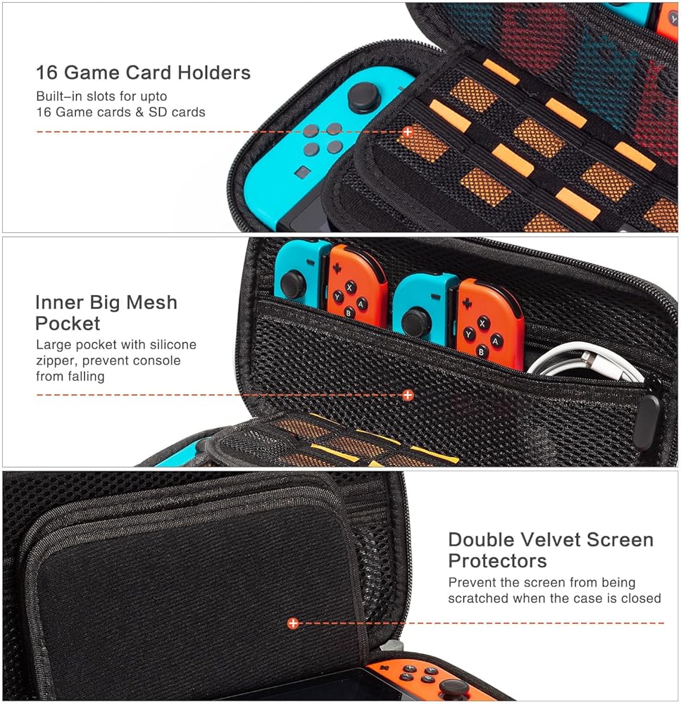 • 【Gaming Time Nintendo Switch Case】-- Vimorco Nintendo Switch OLED Case, Nintendo Switch Case, Carry Case for Nintendo Switch, Switch Travel Case for Girls Boys, 16 Game Card Slots, Hard Shell Cover for Console Games & Joy-Con.