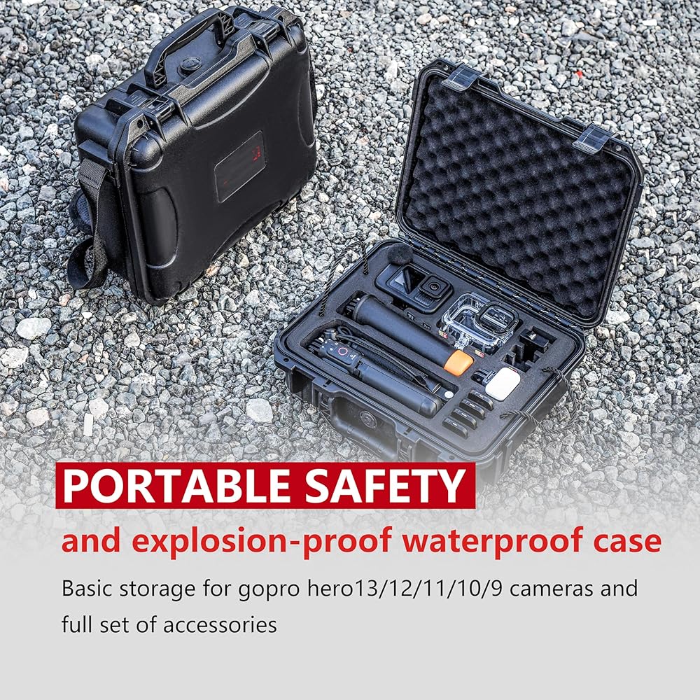 Hard Case Professional Design: The storage and protective hard waterproof case designed specifically for GoPro 13 series of action cameras, suitable for basic storage for GoPro Hero13/12/11/10/9 cameras and a complete set of accessories