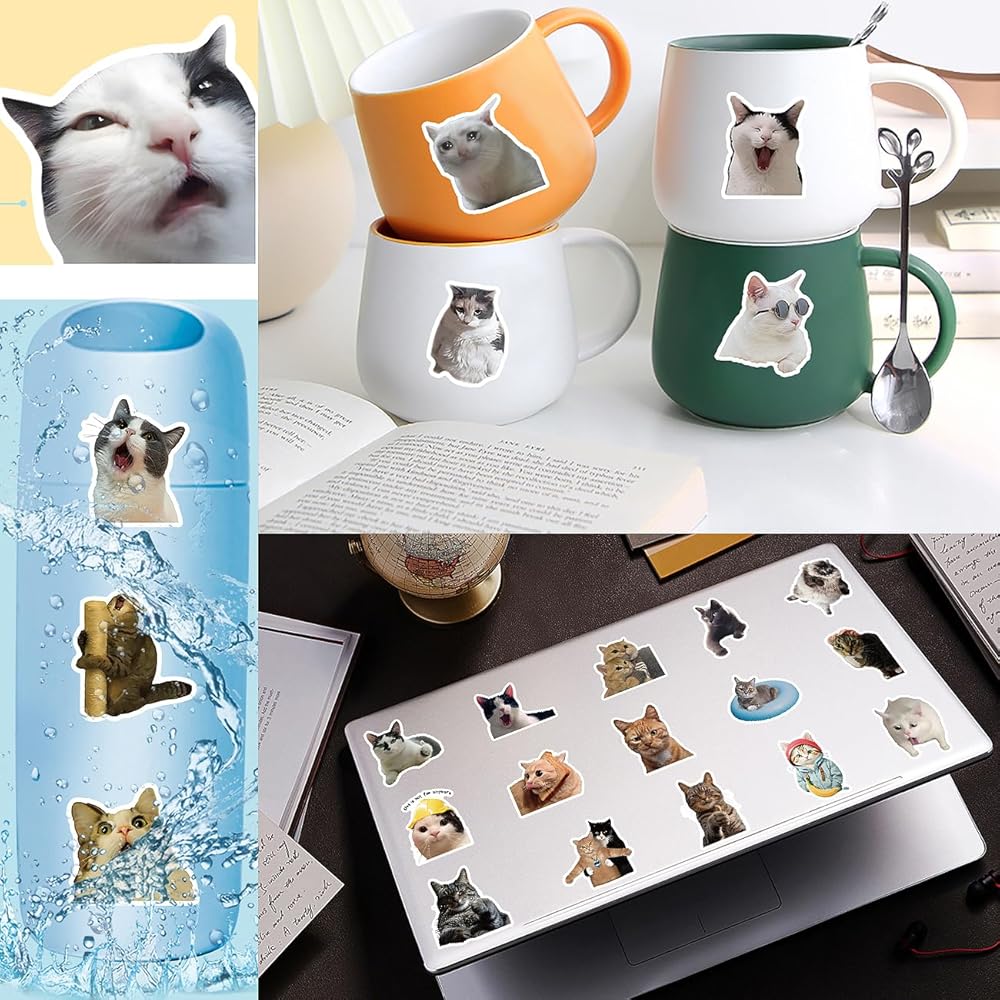 Cute Stickers for Water Bottles, Waterproof,Aesthetic,Trendy Stickers for Teens,Girls Perfect for Waterbottle,Laptop,Phone,Travel(50 Pack, Cute Cat Stickers)