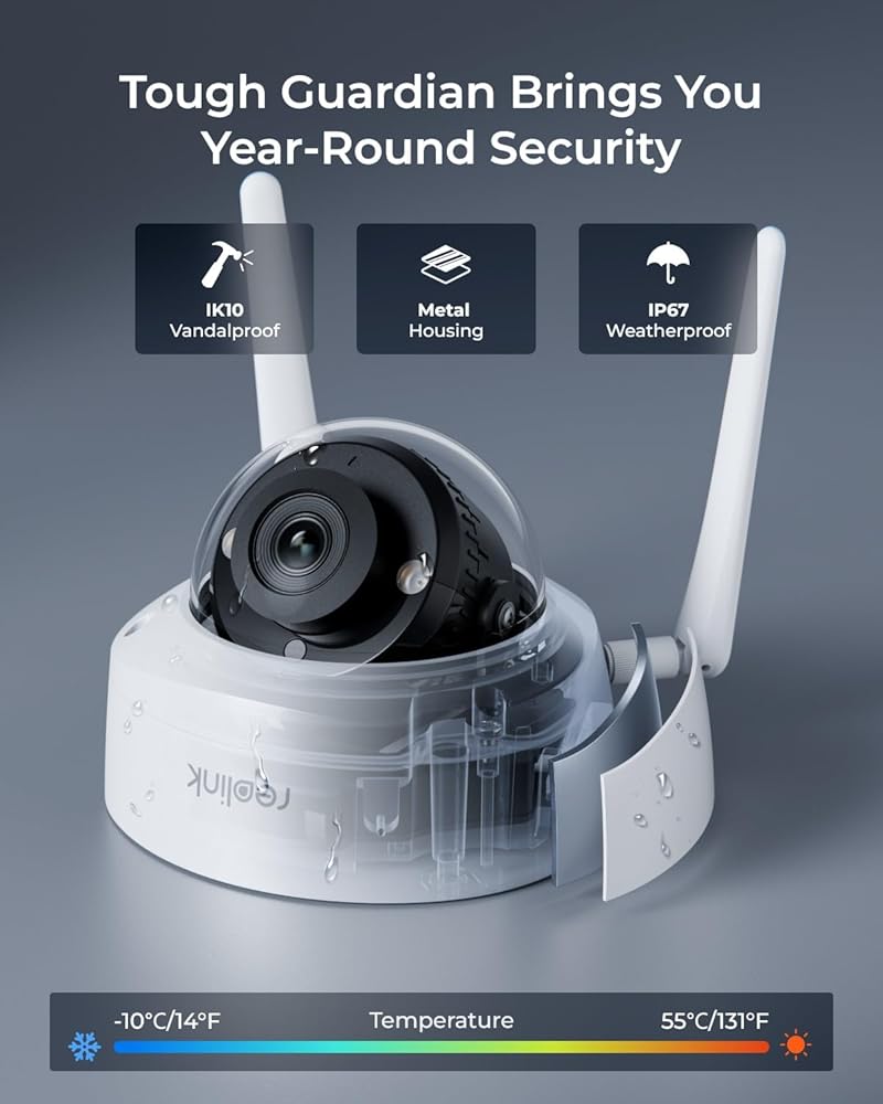 Reolink 4K 8MP كاميرا أمان في الهواء الطلق ، كاميرا مراقبة القبة مع IK10 Vandal مقاومة ، مزدوجة النطاق Wi-Fi 6 ، 256 جيجابايت بطاقة microSD