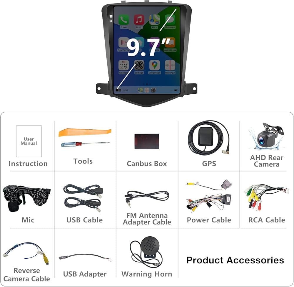 9.7 بوصة Android 13 Car Radio متوافقة مع Chevy Cruze 2009 2010 2011 2012 2013 ، 2+64g stereo Radio Radio مع Carplay/Android Auto ، Bluetooth GPS SWC Camera النسخ الاحتياطي