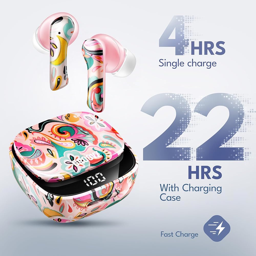الحرية اللاسلكية الحقيقية: مع سماعات الأذن اللاسلكية الحقيقية ، تغمر نفسك في الموسيقى وتلقي المكالمات بدون أسلاك متشابكة. جرب الاقتران الفوري مع Bluetooth 5.3 وتجهيز قوائم التشغيل دون عناء أو الإجابة على مكالمات مع أدوات التحكم في اللمس الذكي.