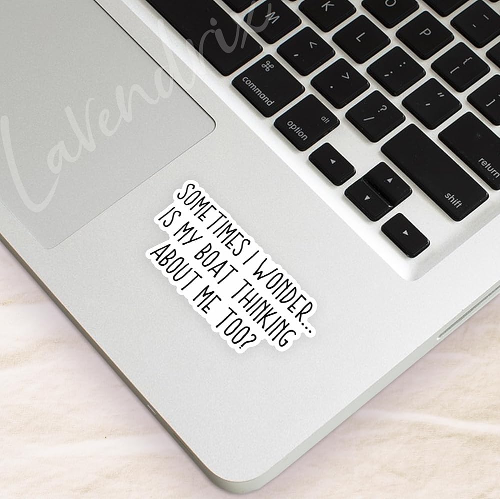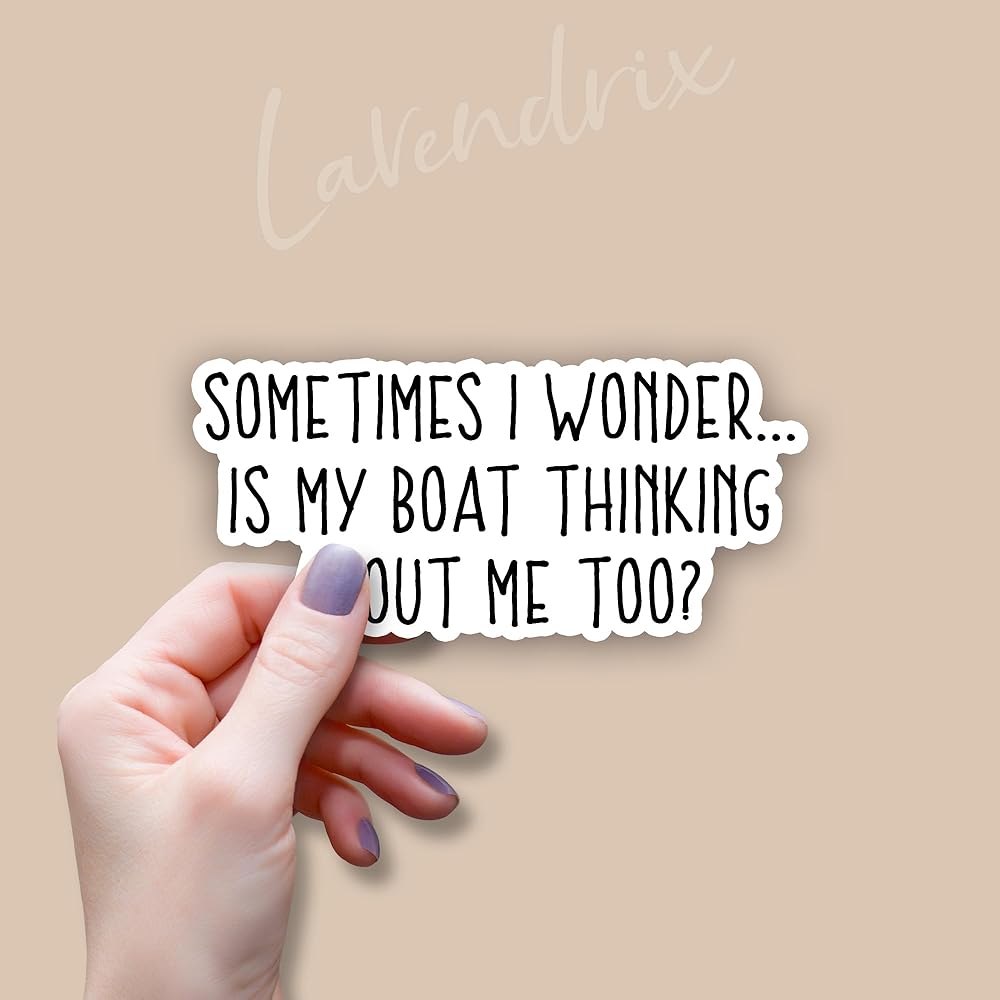 التصميم الفكاهي: يضم اقتباس بارع "أحيانًا أتساءل ... هل يفكر قاربي بي أيضًا؟" في نص جريء وسهل القراءة