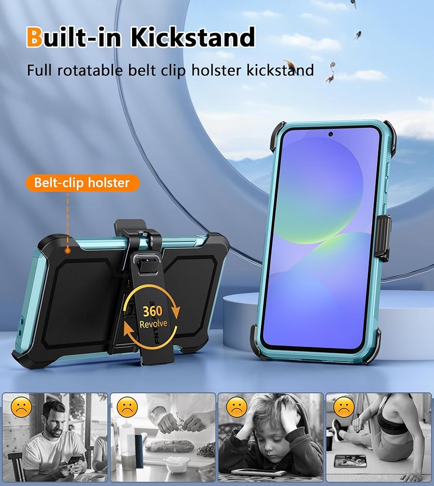 360 CORTABLE CLIP: توفر علبة Samsung Galaxy A16 5G مقطع حزام قابل للتدوير 360 ، أو يمكنك وضع هاتفك بشكل مناسب على حزامك أو حقيبة الظهر. يمكن لهذه الحالة حماية هاتفك من الأضرار عند العمل في الهواء الطلق ، والرياضة ، والتخييم ، والسفر