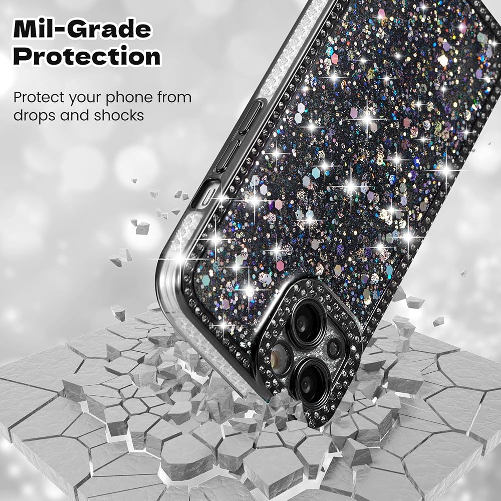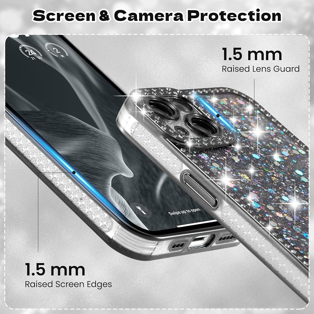 تصميم الماس الرائع: يحيط الماس اللامع اللامع لـ iPhone 16 Pro Max الماس الفاخر والرائع الذي يتم تضمينه بحزم على كل من عدسة الكاميرا والكاميرا الكهربائية ، مما يجعل علبة هاتفك أكثر جاذبية للنظر