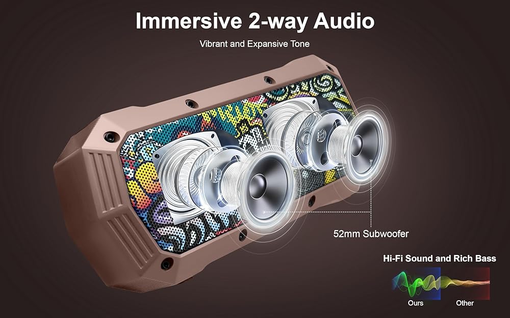 • صوت ستيريو غامرة بصوت عالٍ: 5W RMS (10W Peak) اتصال Bluetooth 5.1 اللاسلكي الذي يضمن اتصالات مستقرة وسريعة لنطاق أقصى قدر من 33 قدمًا وأداء للتدفق السلس ؛ يتواصل دون عناء بالهواتف الذكية والأجهزة اللوحية والأجهزة الأخرى ، تخصيص تجربة الاستماع الخاصة بك مع وضع التعادل المتقدم الخاص بنا ، مما يتيح لك ضبط الإعدادات الباس والمتوسطة والثلاثية لتناسب ذوقك الشخصي. سواء كنت في المنزل أو تستضيف حفلات في الهواء الطلق ، فإن هذا المتحدث يرفع متعة الاستماع الخاصة بك.