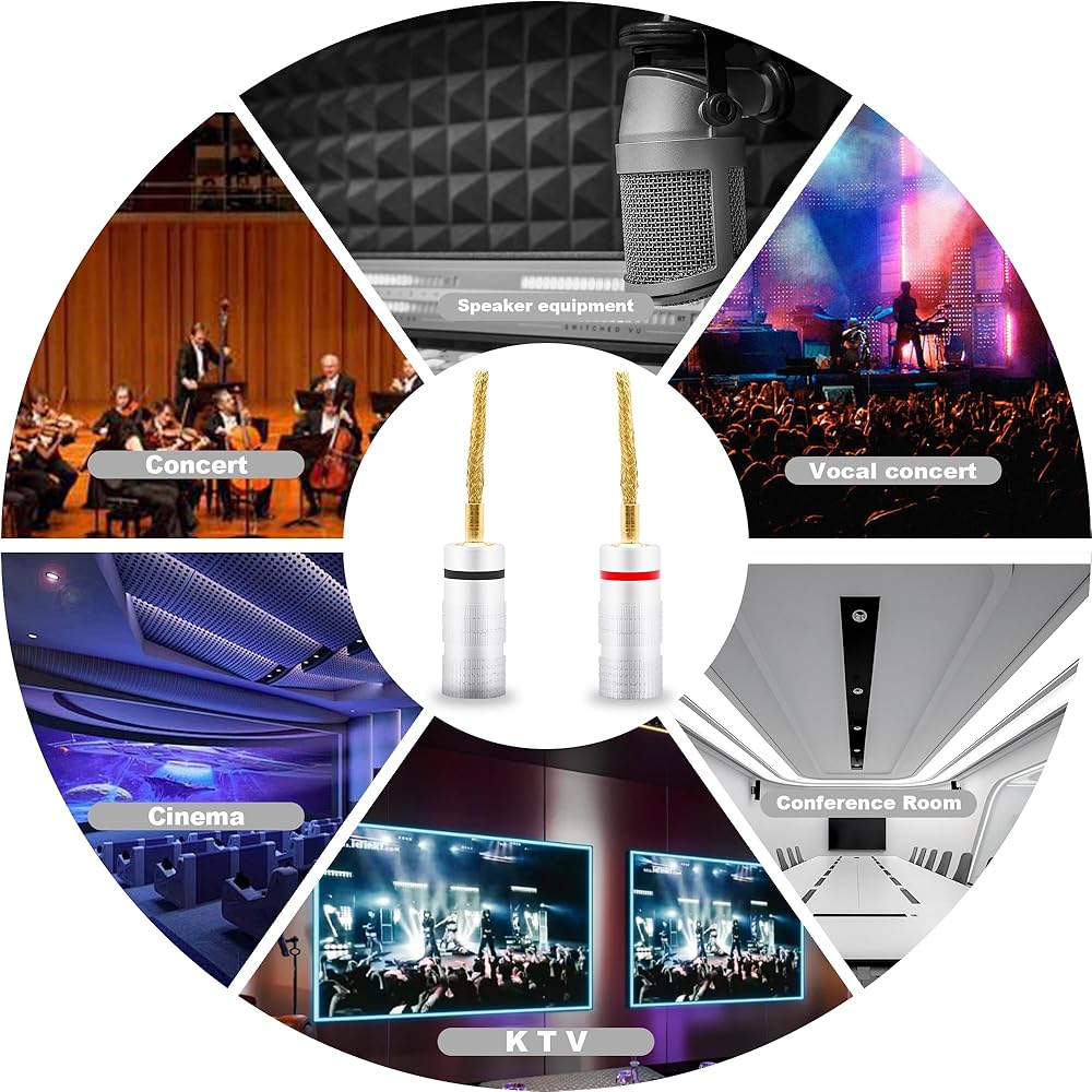 يمكن لموصلات مكبر الصوت Flex Pin Banana توصيلها مباشرةً في منشورات ربط مكون الصوت بسلاسة ، وتقدم اتصالًا أكثر أمانًا وأمانًا مقارنة بالأسلاك العارية ، ويقلل من خطر الإصابة بالكهرباء.