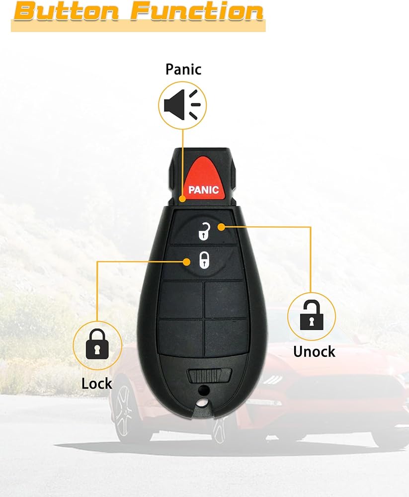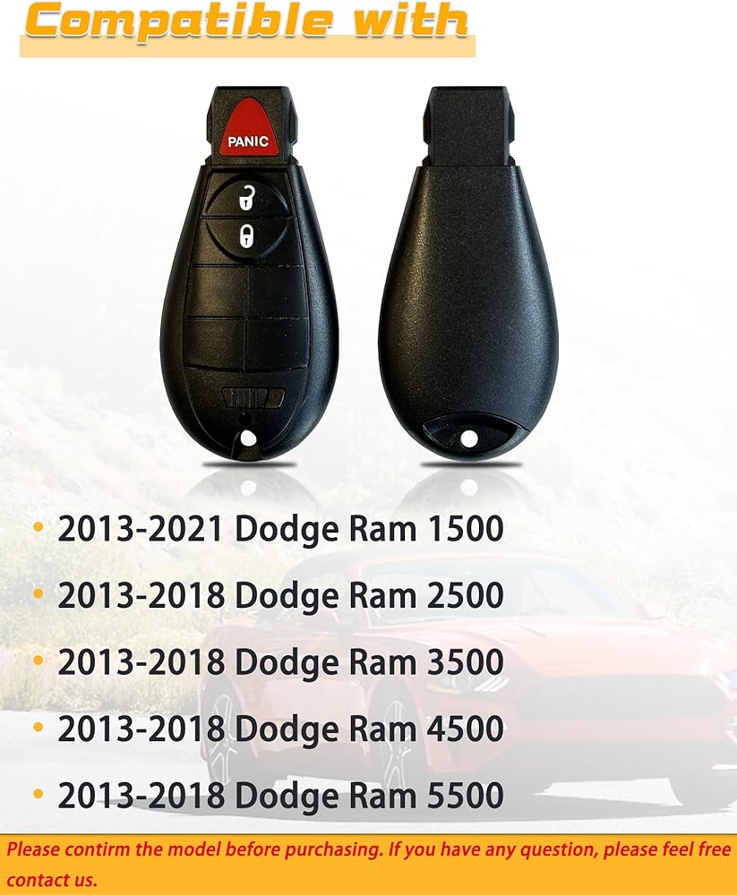 نوبات استبدال Key FOB لـ Dodge RAM 1500 2013 2014 2015 2017 2017 2018 2019 2020 2021/ DODGE RAM 2500 3500 4500 5500 2013-2018 GQ4-53T ، 3 buttons (Pack of 2)