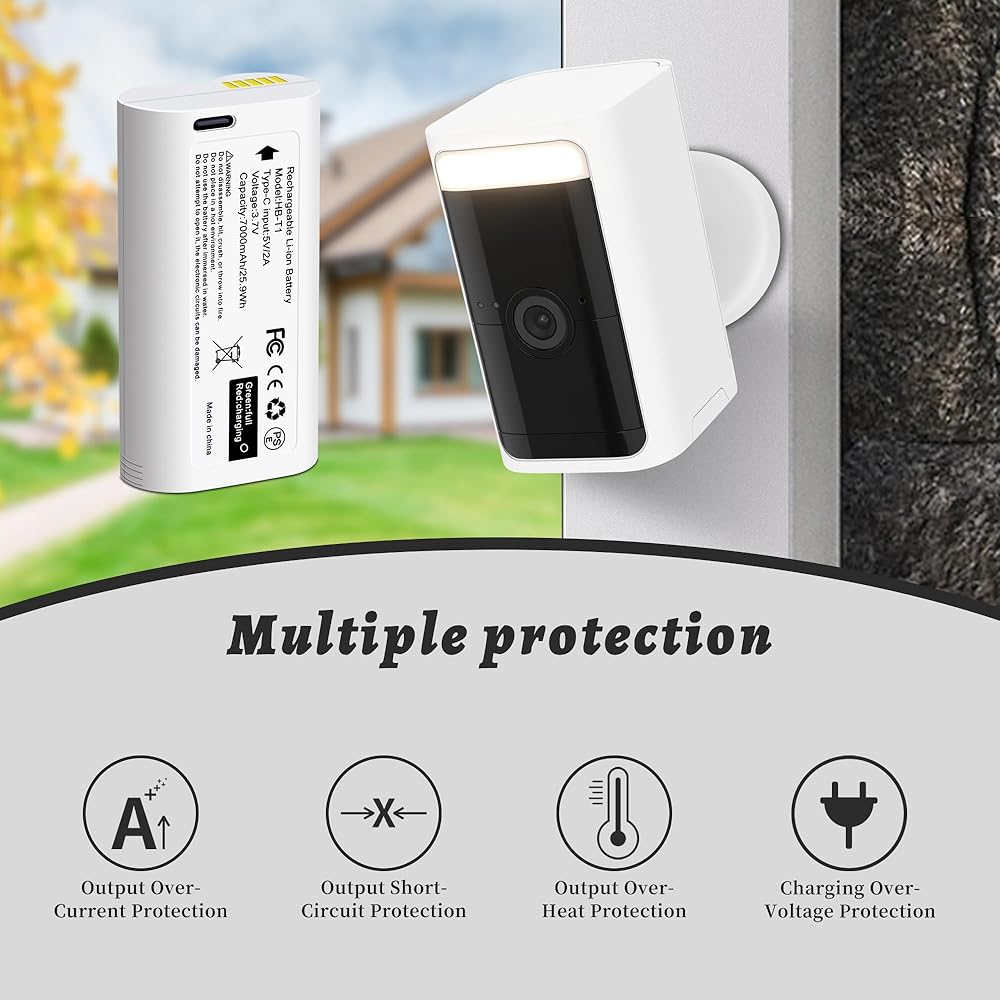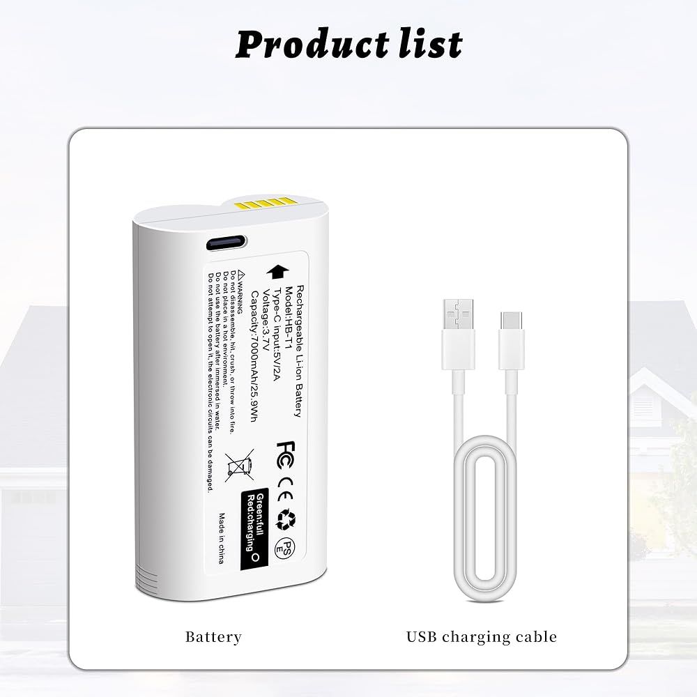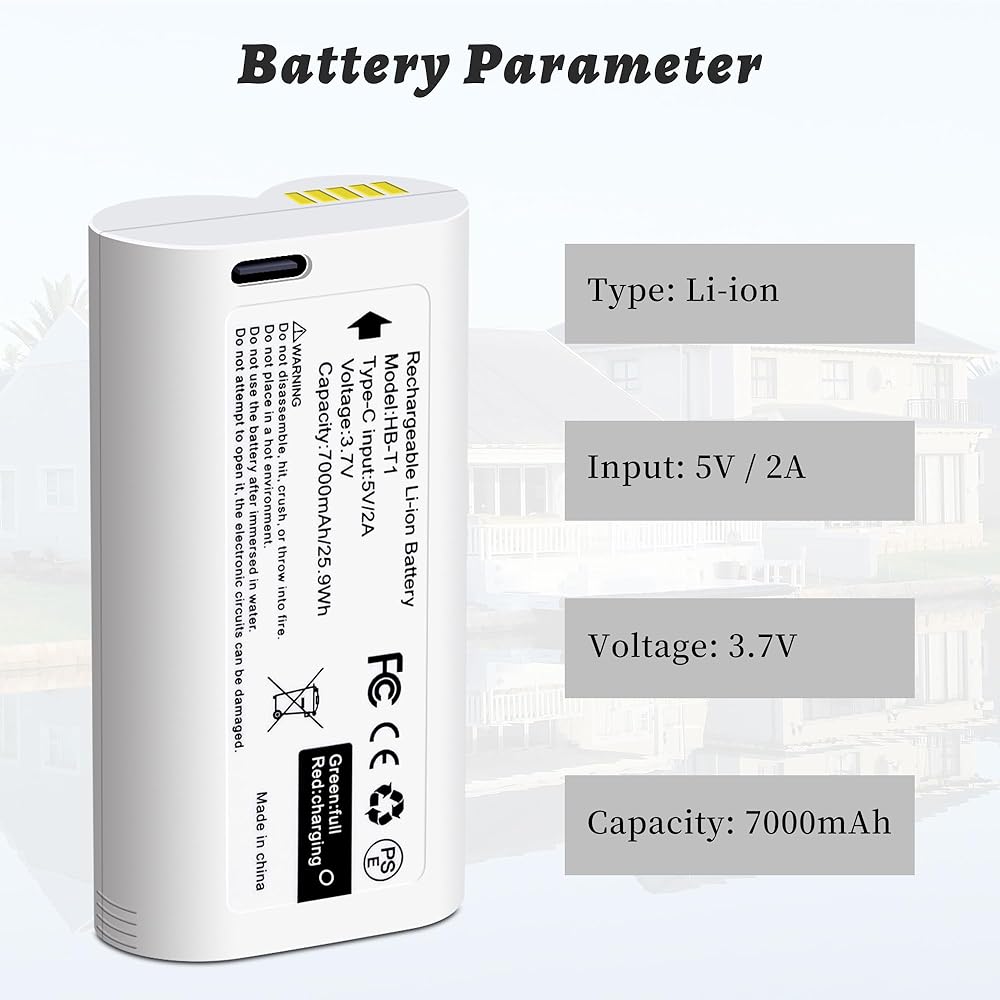 بطارية 7000mAh قابلة لإعادة الشحن لكاميرا Wyze Battery Cam Pro في الهواء الطلق ، 7000 مللي أمبير في الساعة ، منفذ شحن USB-C ، وضوء الحالة ، ومجهز بكابل USB-C