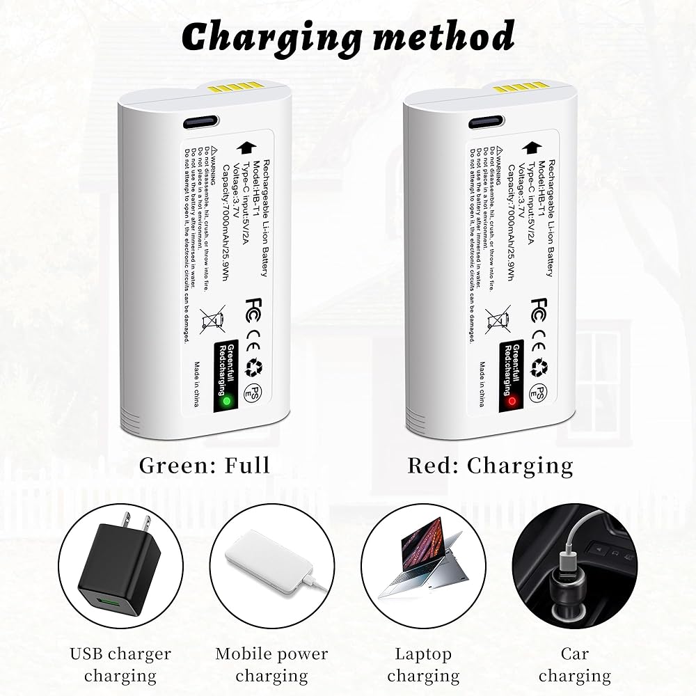 [بالنسبة لكاميرا Wyze Battery Cam Pro] بطارية احتياطية عالية السعة 7000mAh ، تم تجهيز البطارية بمنفذ شحن USB-C ، مما يجعل الشحن أسهل. (ملاحظة: تدعم هذه البطاريات شحن USB-C فقط! لا تستخدم لوحة الطاقة الشمسية المدمجة للكاميرا أو رصيف البطارية للشحن.)